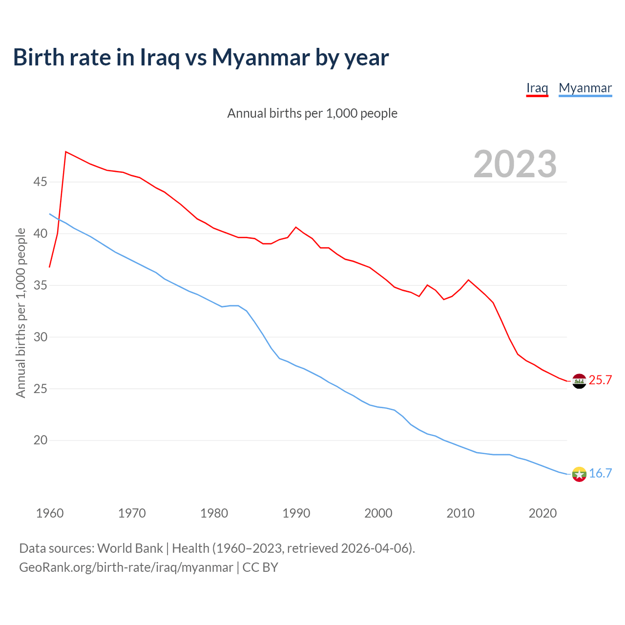 GeoRank.org/birth-rate/iraq/myanmar | CC BY