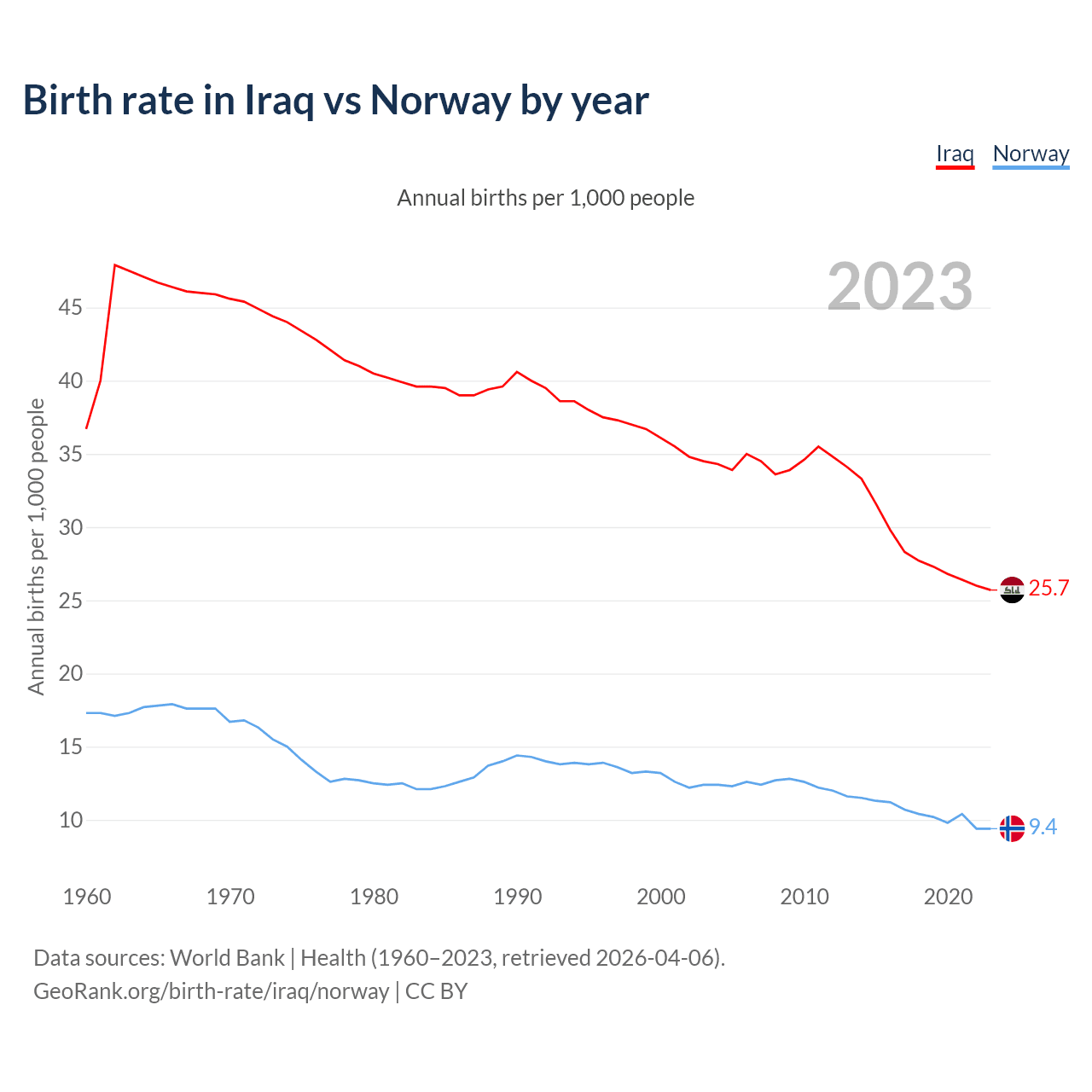 GeoRank.org/birth-rate/iraq/norway | CC BY