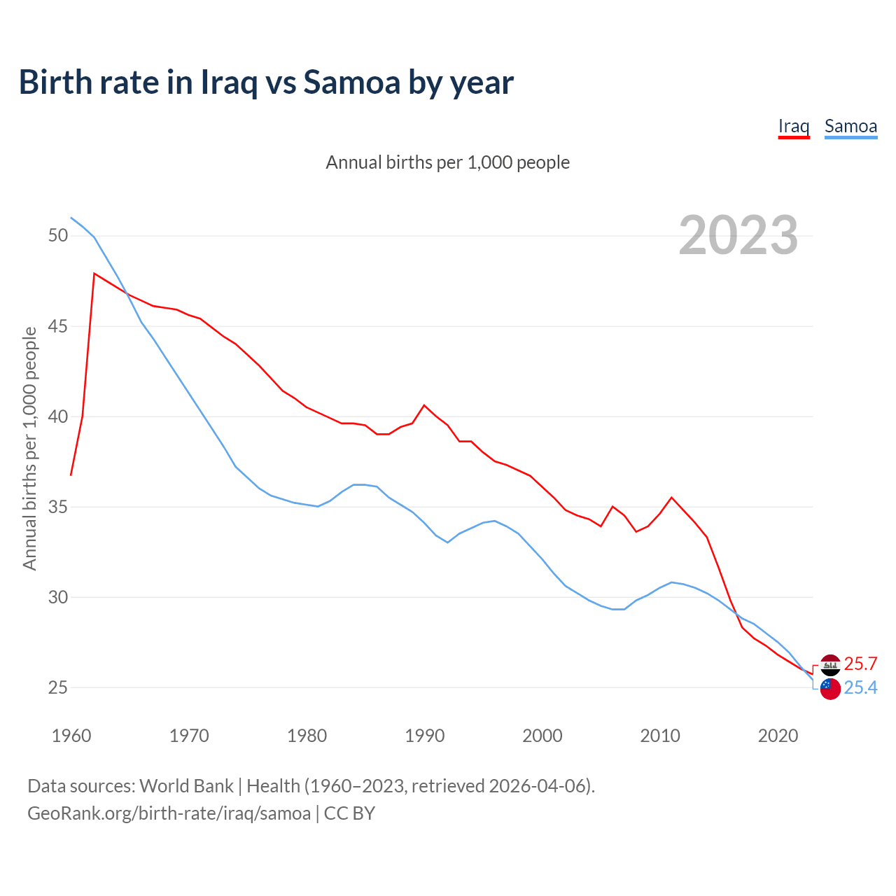 GeoRank.org/birth-rate/iraq/samoa | CC BY