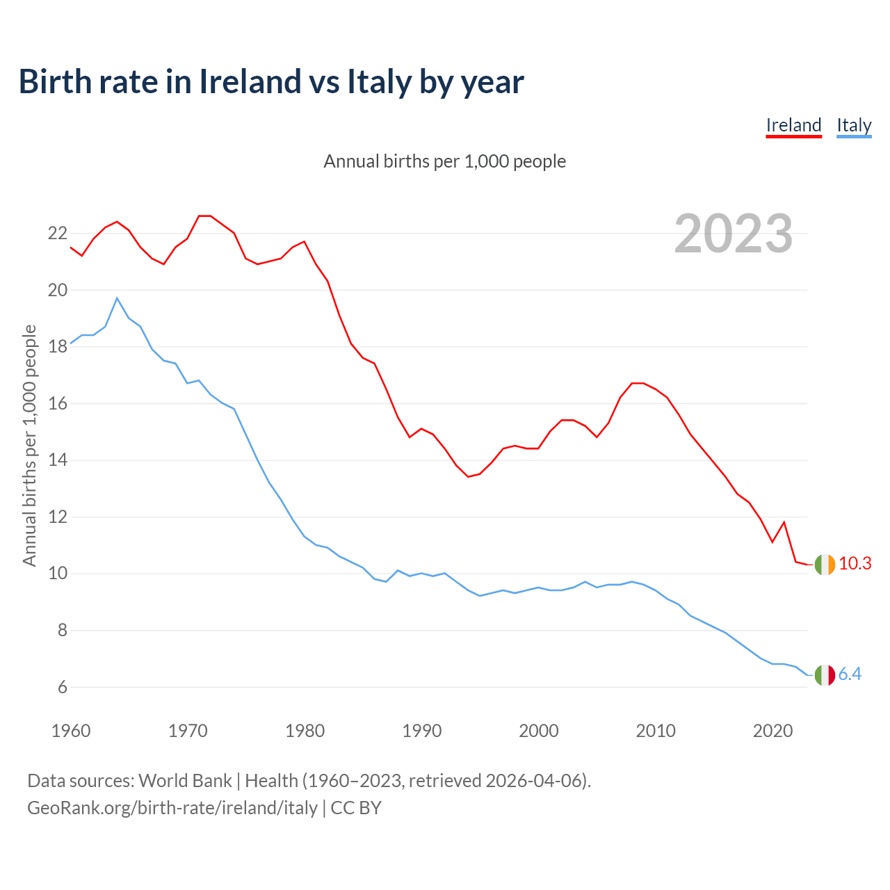 GeoRank.org/birth-rate/ireland/italy | CC BY