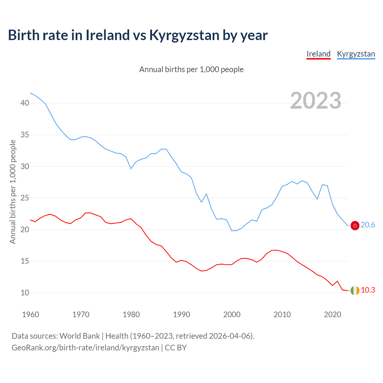 GeoRank.org/birth-rate/ireland/kyrgyzstan | CC BY