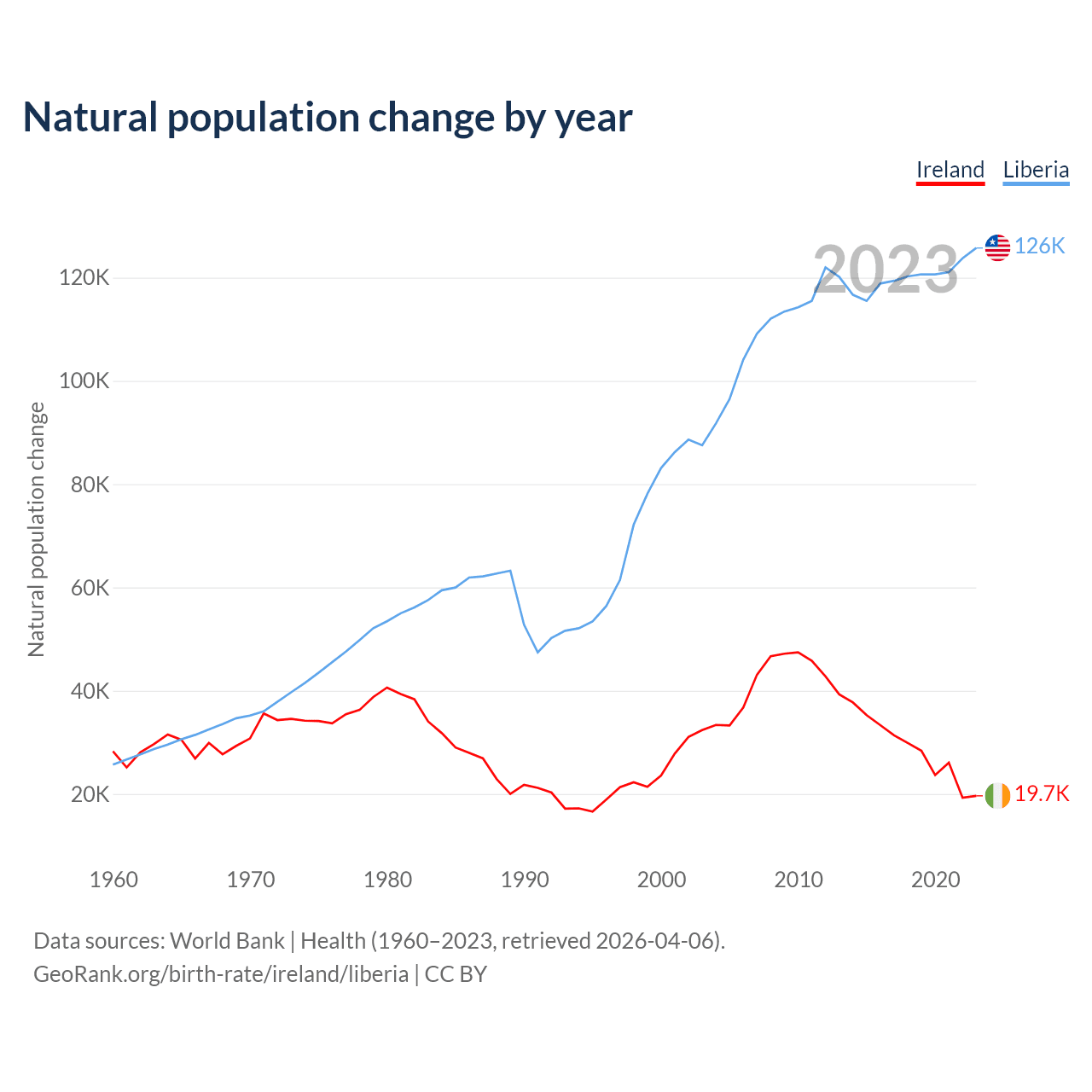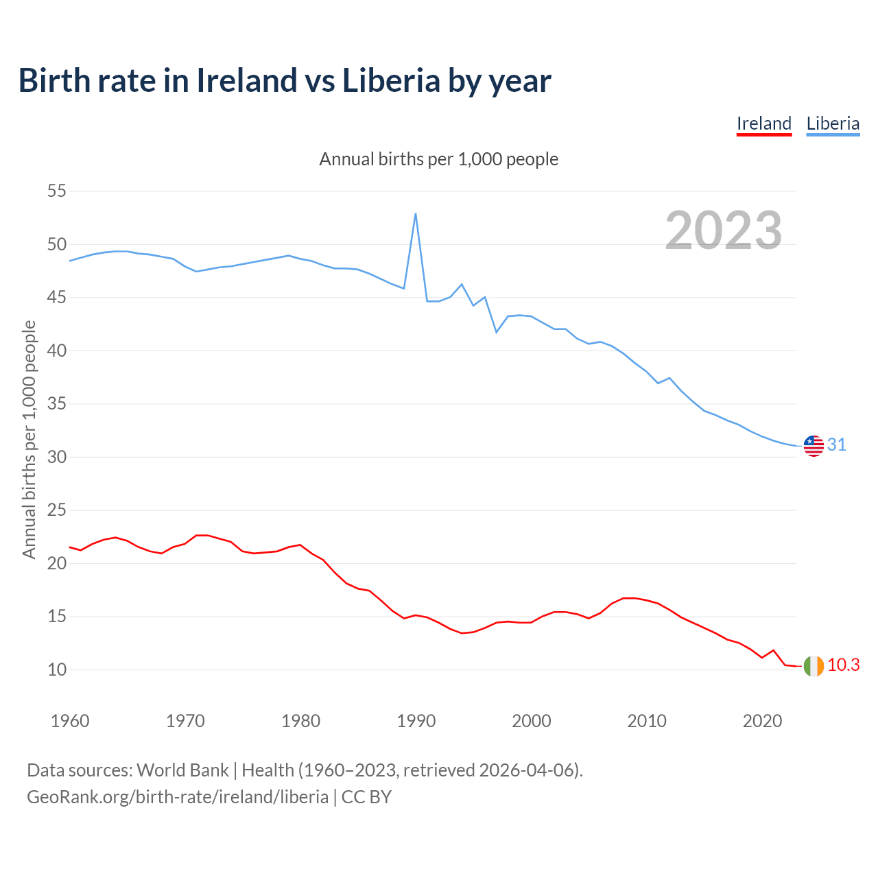 GeoRank.org/birth-rate/ireland/liberia | CC BY