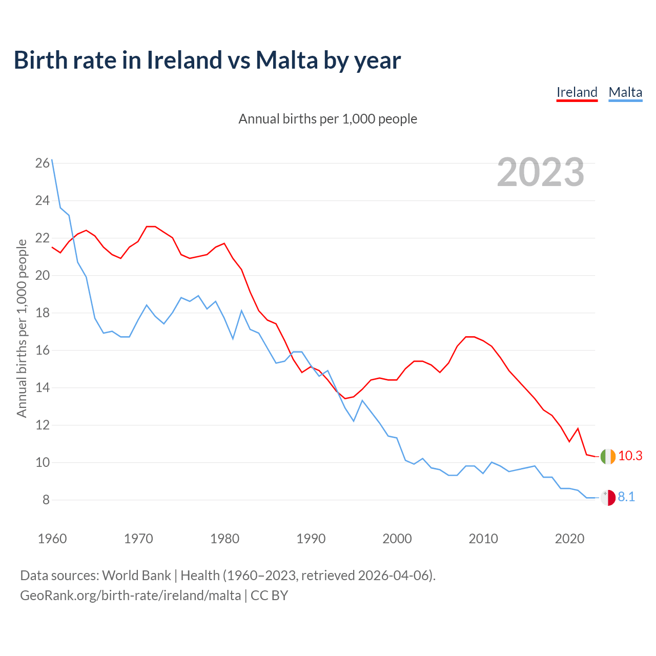 GeoRank.org/birth-rate/ireland/malta | CC BY
