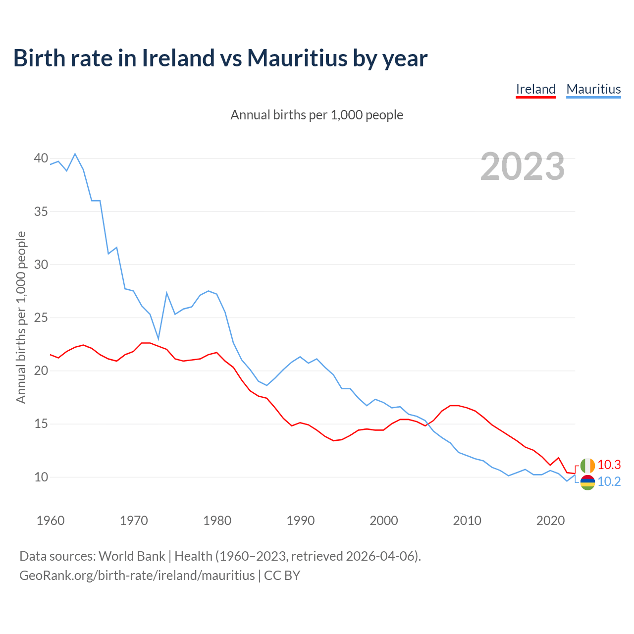 GeoRank.org/birth-rate/ireland/mauritius | CC BY