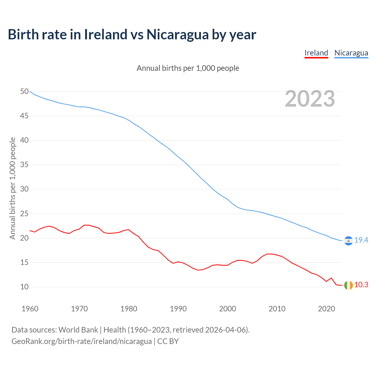 GeoRank.org/birth-rate/ireland/nicaragua | CC BY