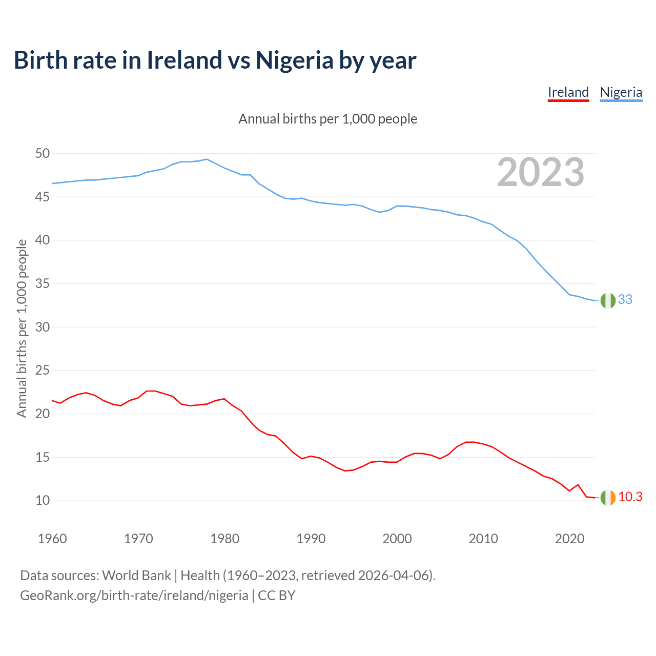 GeoRank.org/birth-rate/ireland/nigeria | CC BY