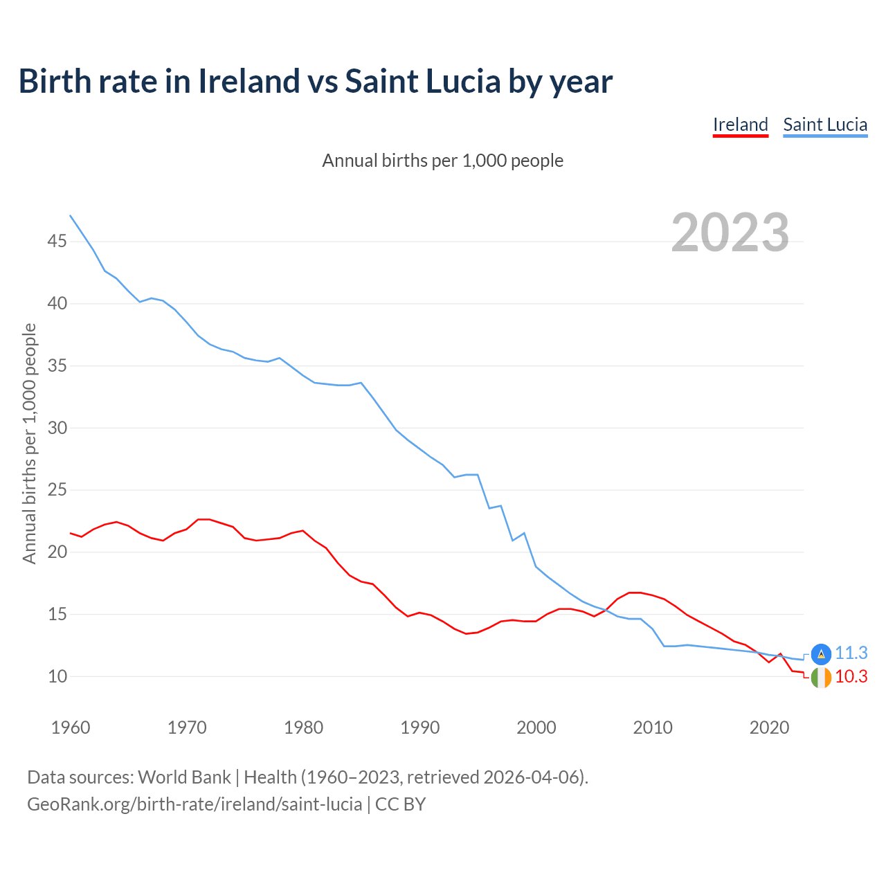 GeoRank.org/birth-rate/ireland/saint-lucia | CC BY