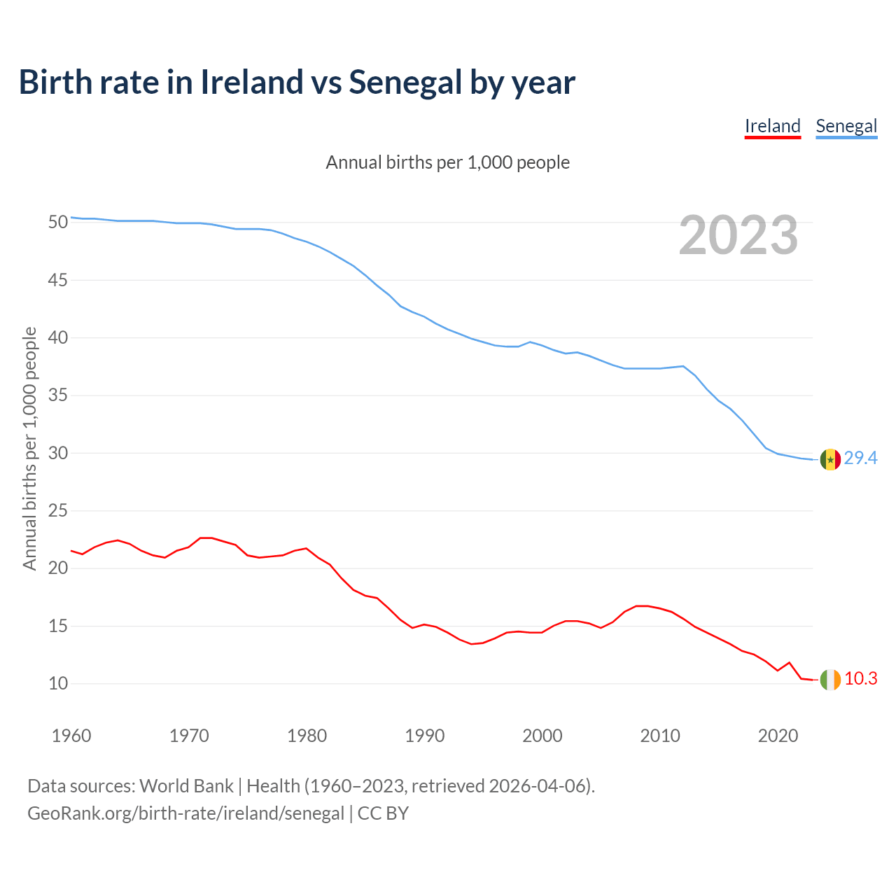 GeoRank.org/birth-rate/ireland/senegal | CC BY