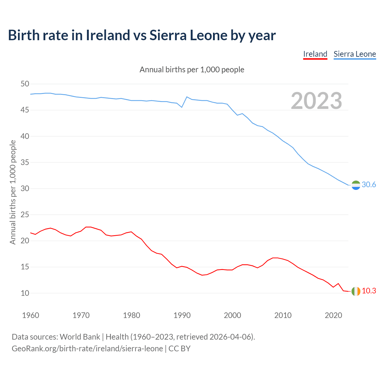 GeoRank.org/birth-rate/ireland/sierra-leone | CC BY