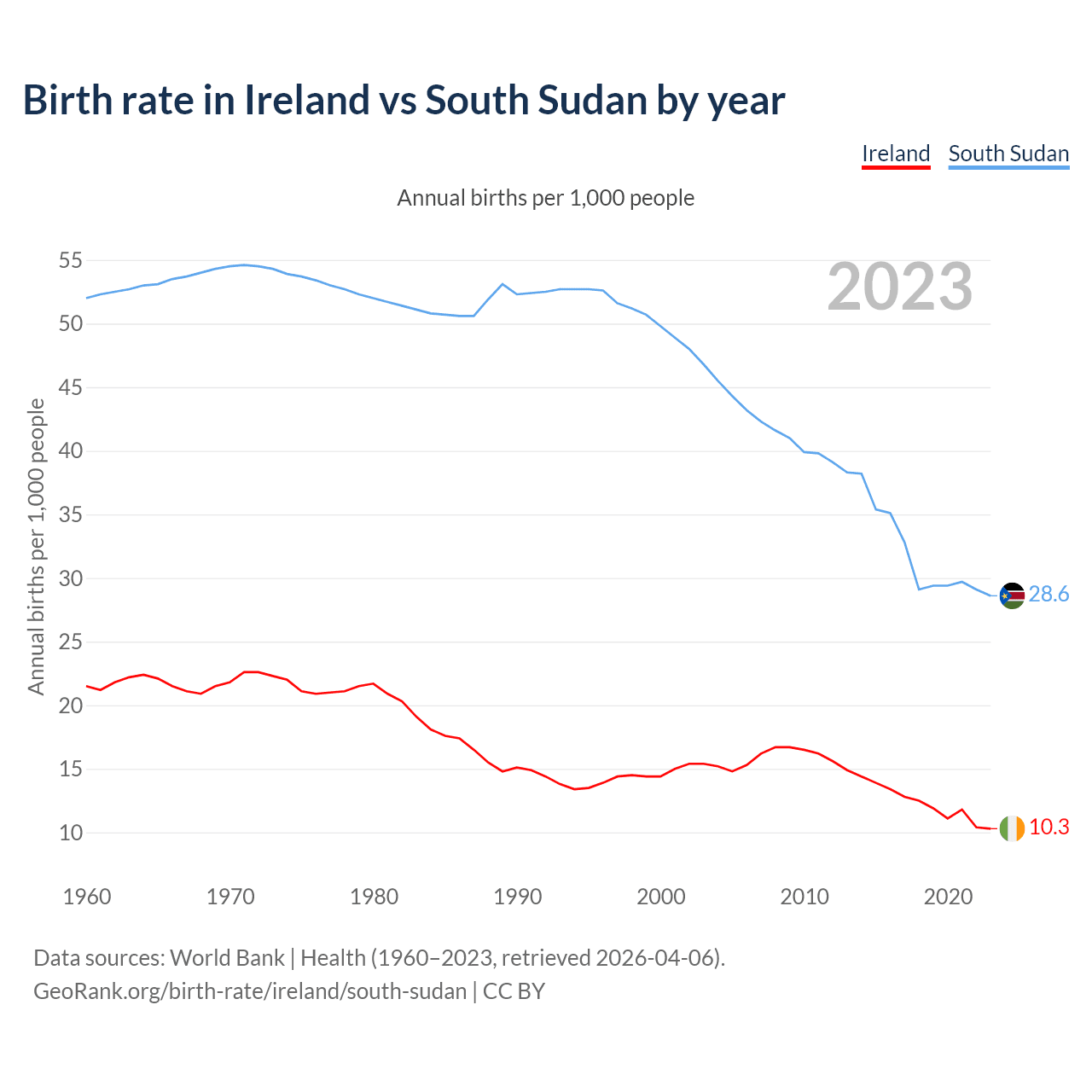 GeoRank.org/birth-rate/ireland/south-sudan | CC BY