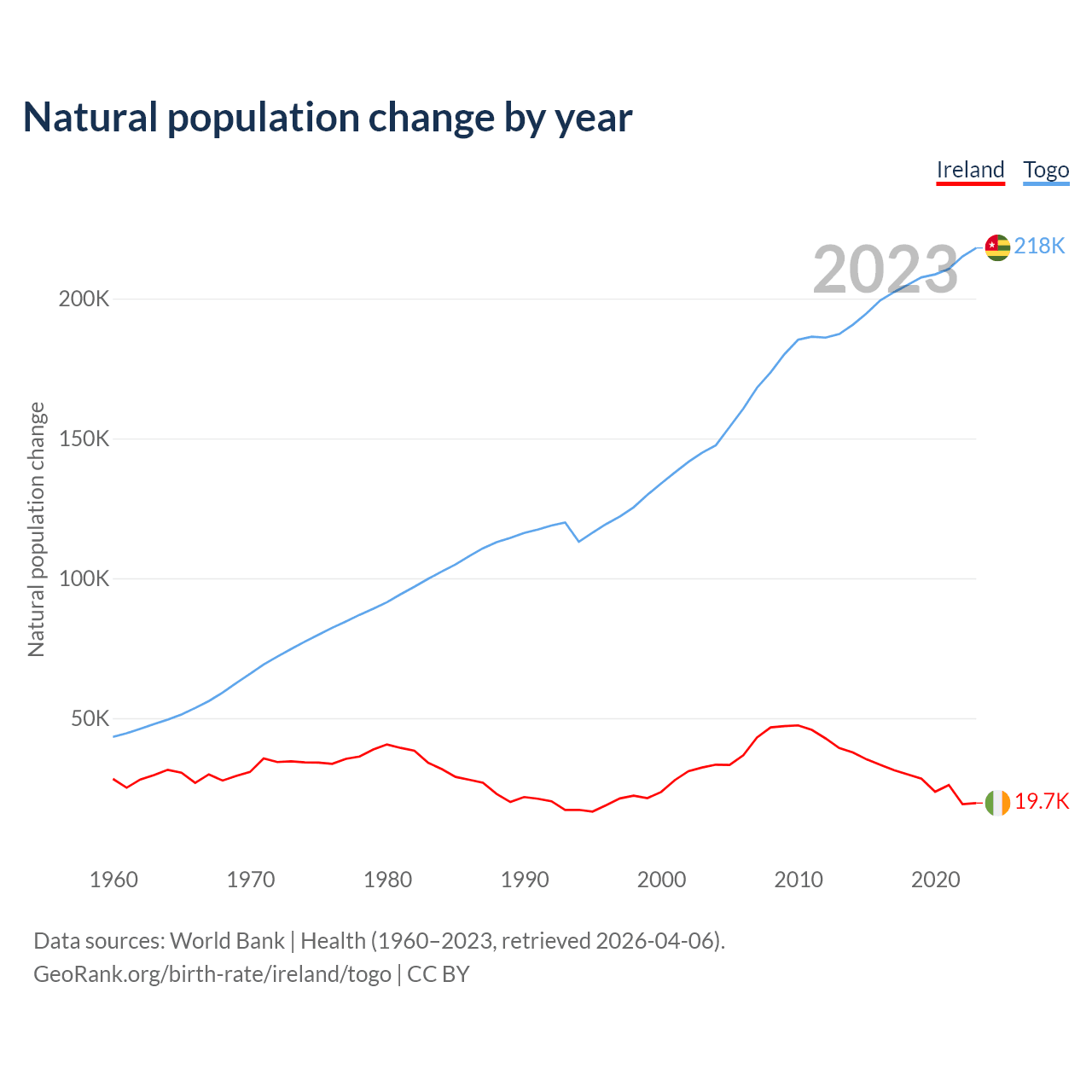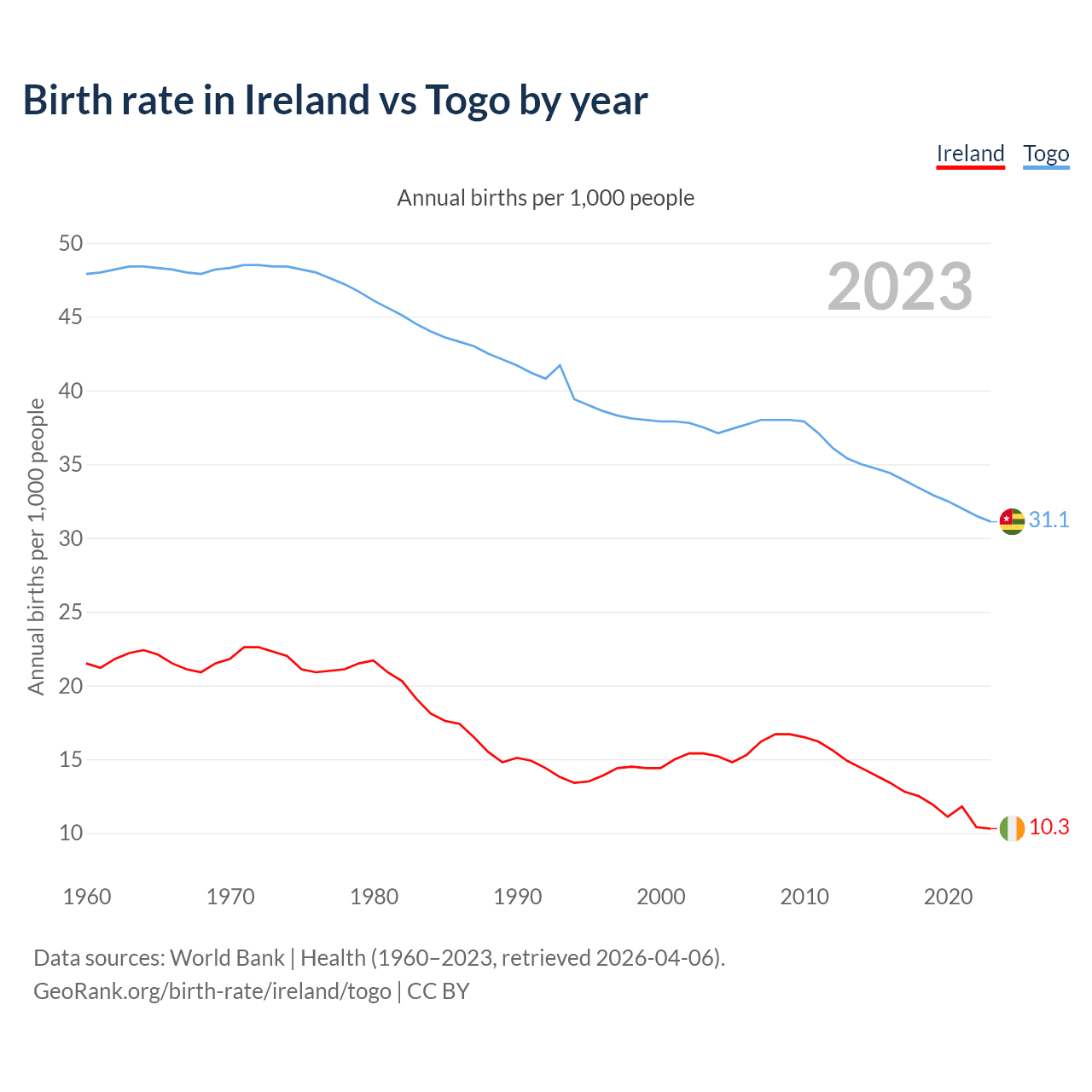GeoRank.org/birth-rate/ireland/togo | CC BY