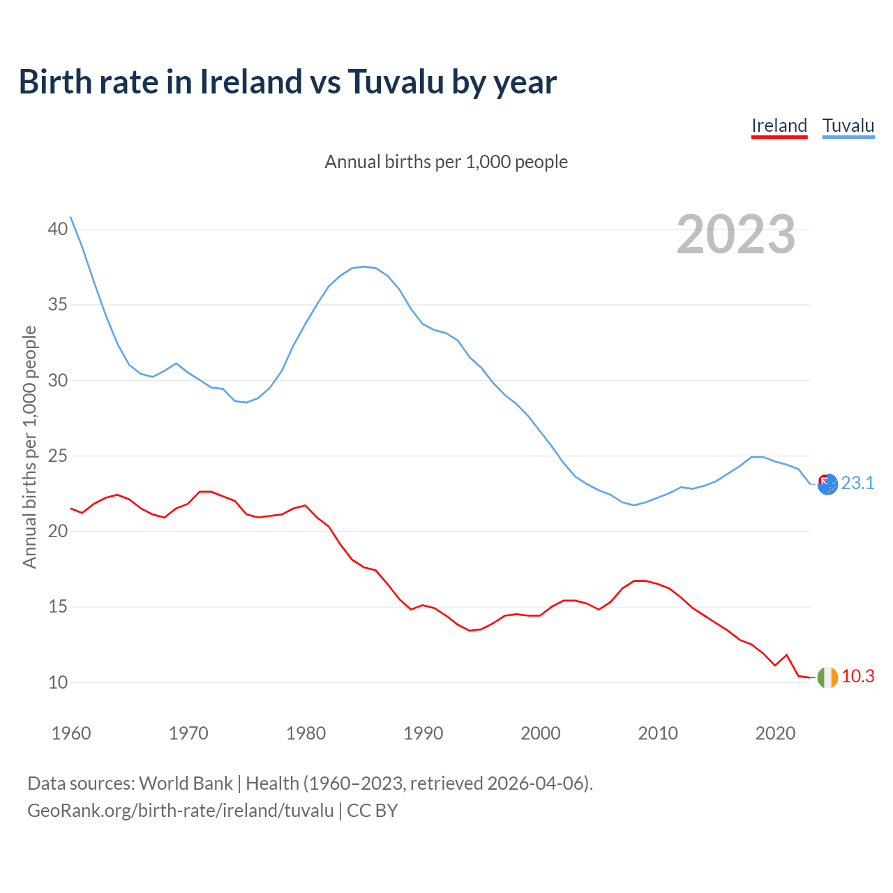 GeoRank.org/birth-rate/ireland/tuvalu | CC BY