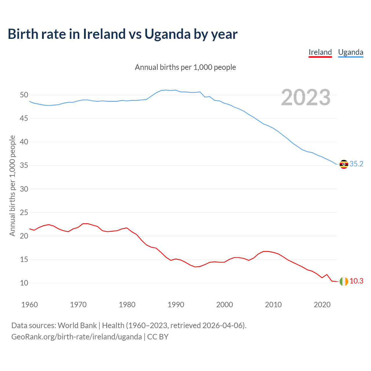 GeoRank.org/birth-rate/ireland/uganda | CC BY