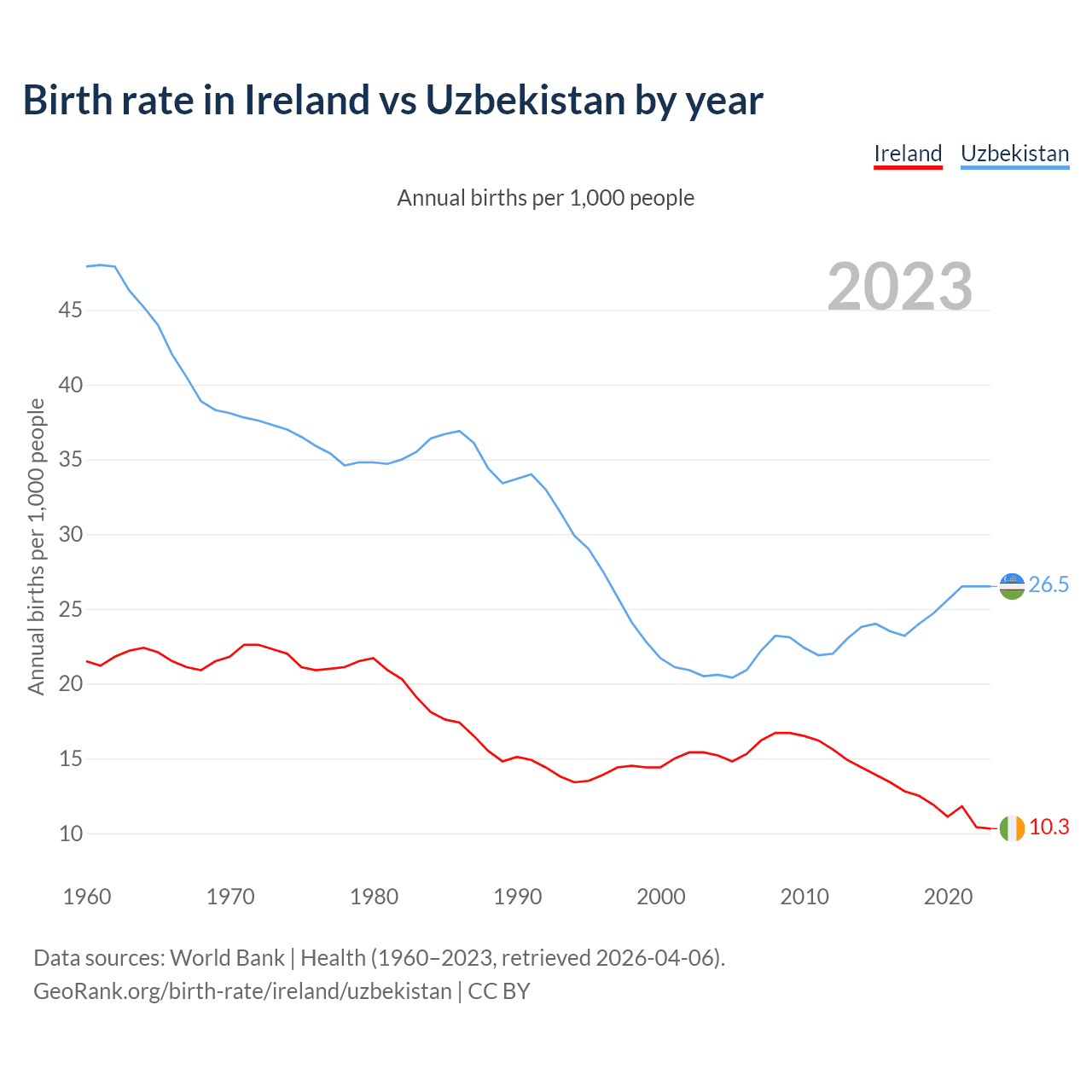 GeoRank.org/birth-rate/ireland/uzbekistan | CC BY