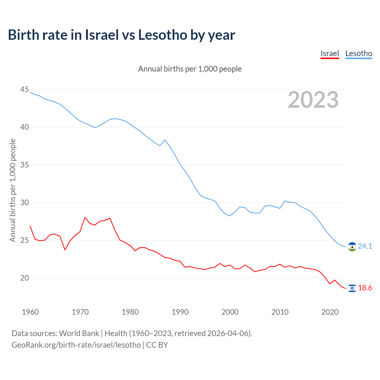 GeoRank.org/birth-rate/israel/lesotho | CC BY
