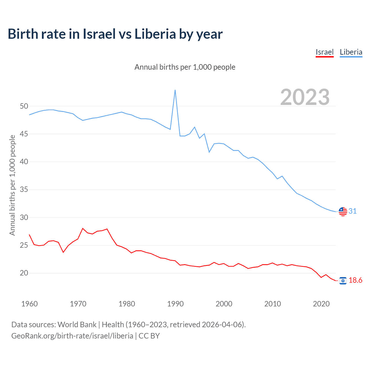 GeoRank.org/birth-rate/israel/liberia | CC BY