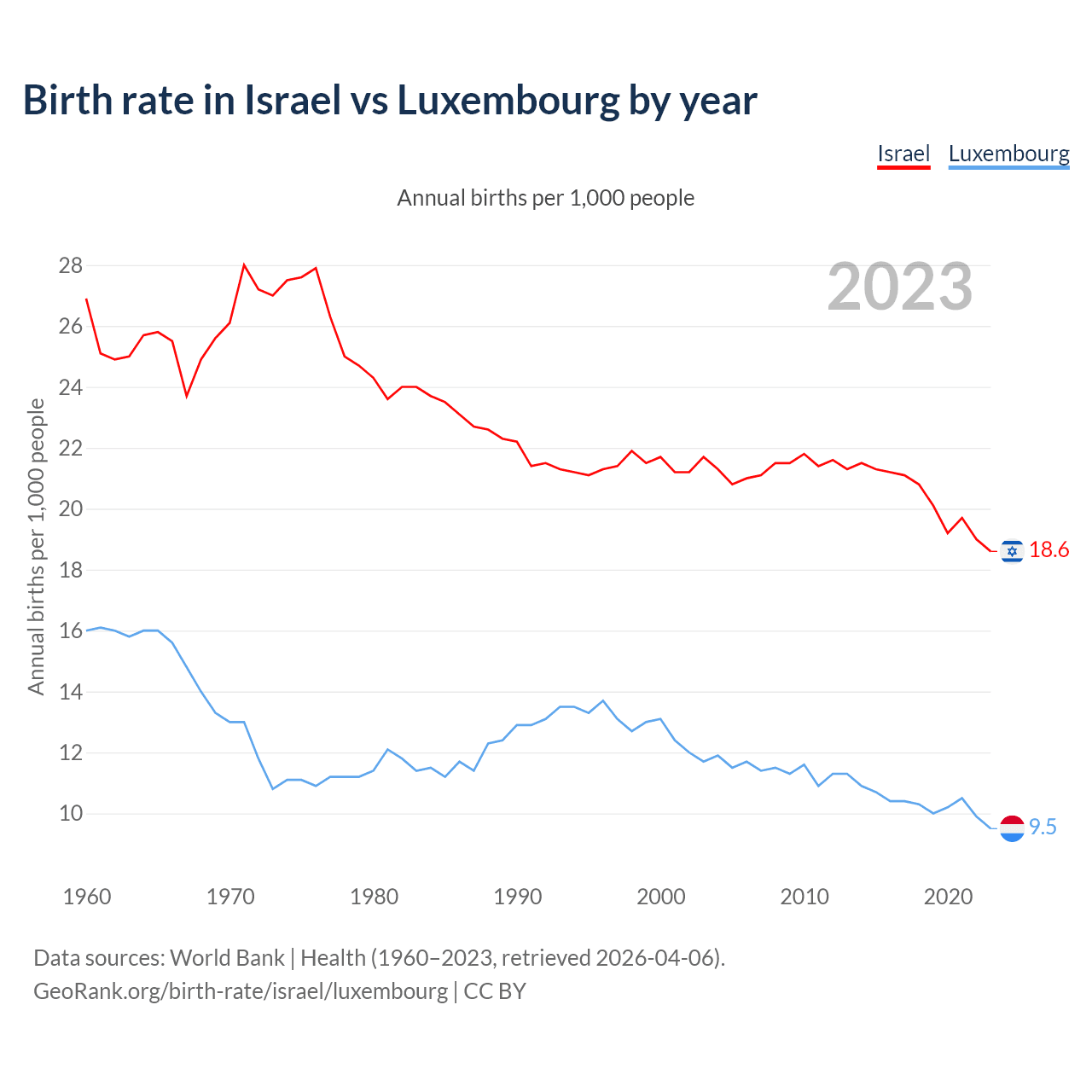 GeoRank.org/birth-rate/israel/luxembourg | CC BY