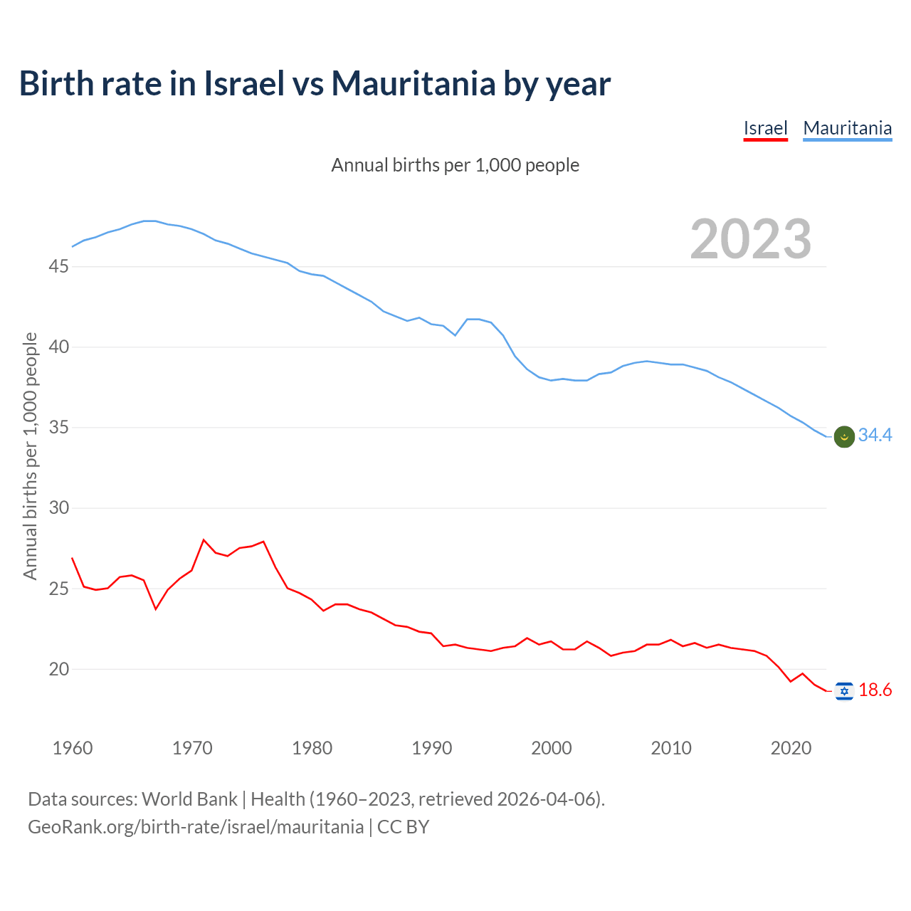 GeoRank.org/birth-rate/israel/mauritania | CC BY