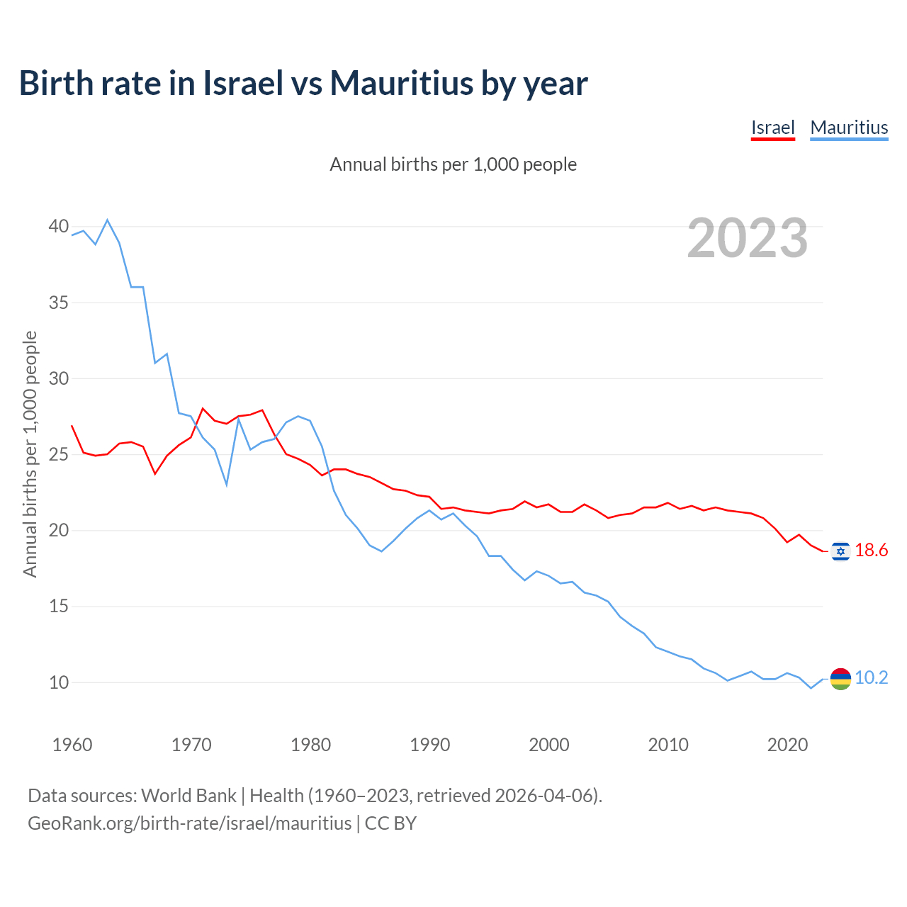 GeoRank.org/birth-rate/israel/mauritius | CC BY