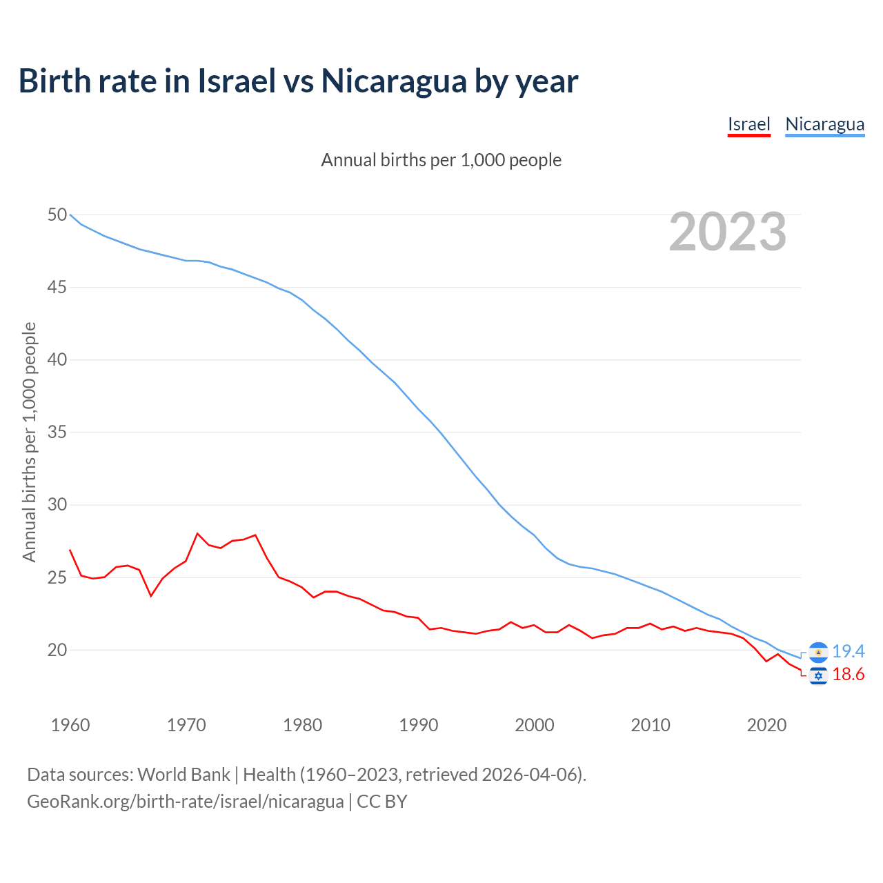 GeoRank.org/birth-rate/israel/nicaragua | CC BY