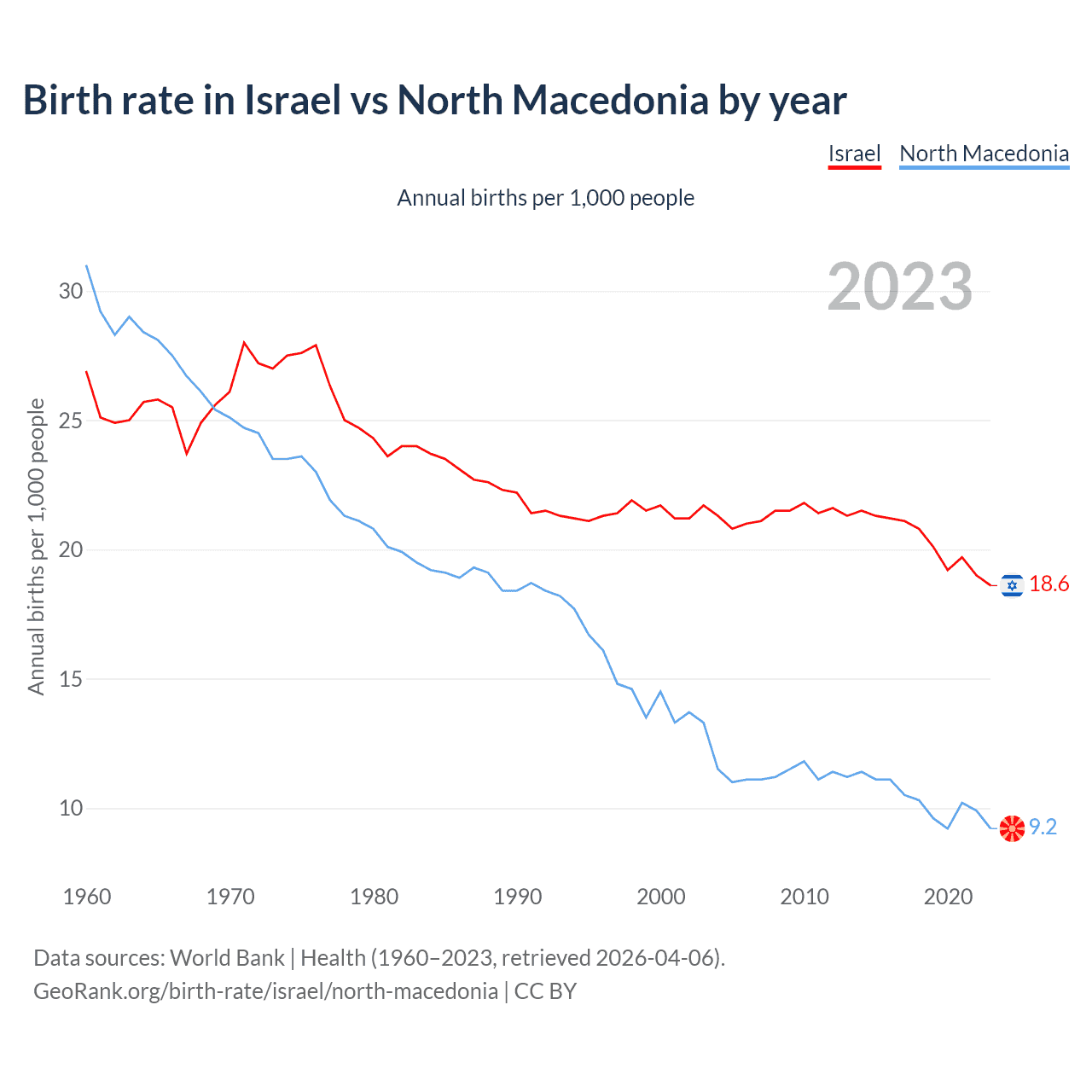 GeoRank.org/birth-rate/israel/north-macedonia | CC BY