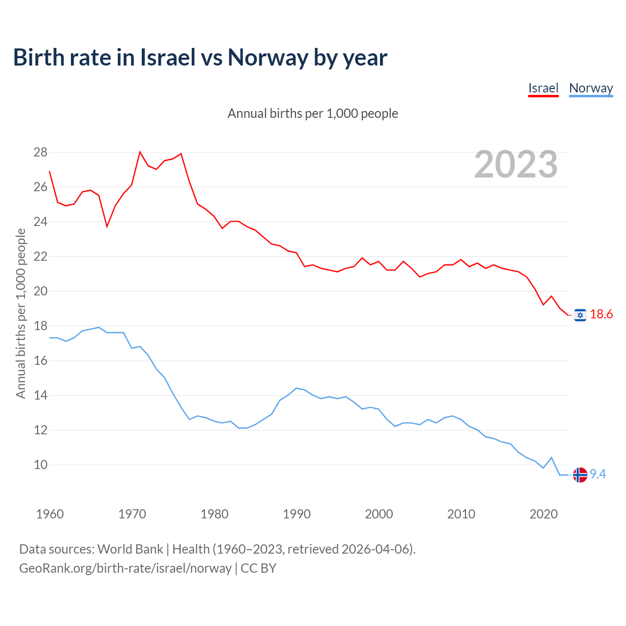 GeoRank.org/birth-rate/israel/norway | CC BY