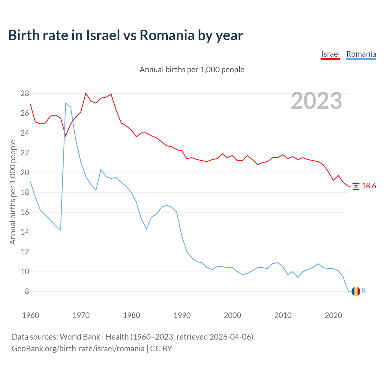 GeoRank.org/birth-rate/israel/romania | CC BY