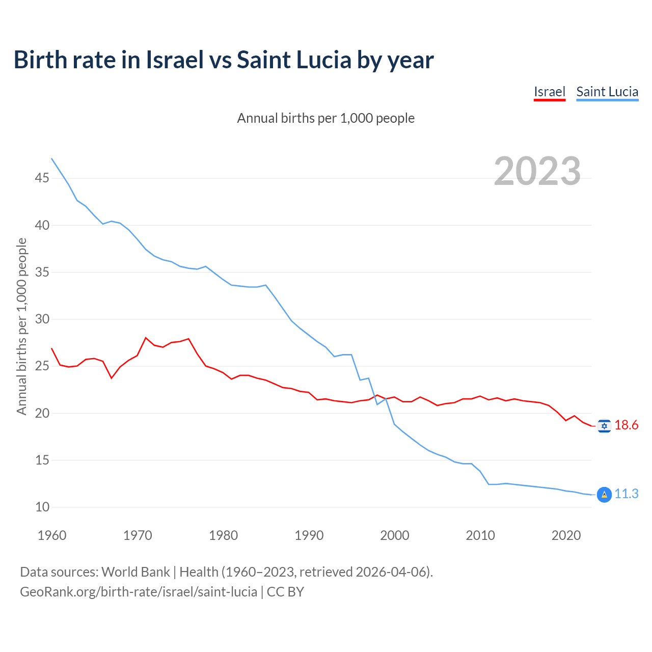 GeoRank.org/birth-rate/israel/saint-lucia | CC BY