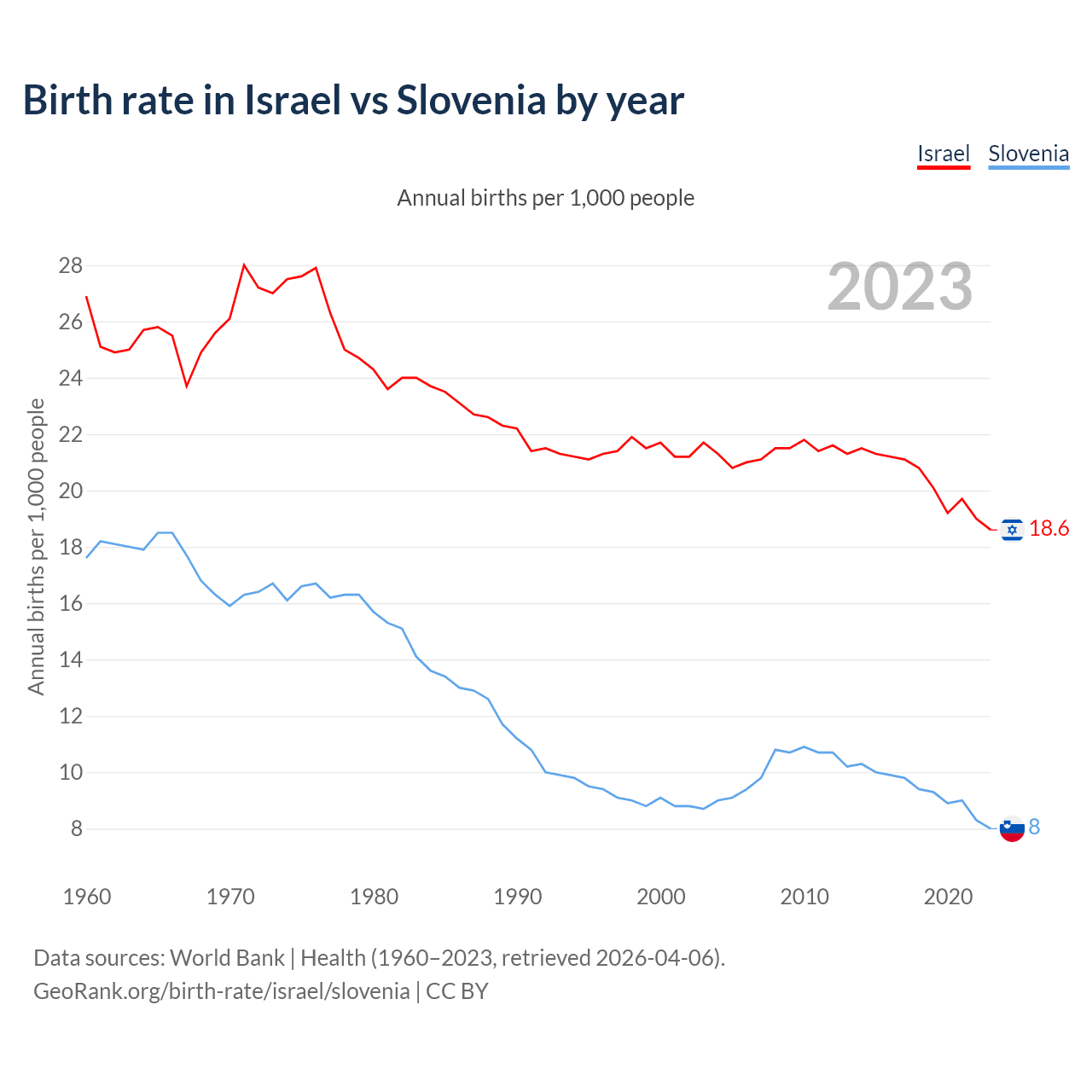 GeoRank.org/birth-rate/israel/slovenia | CC BY