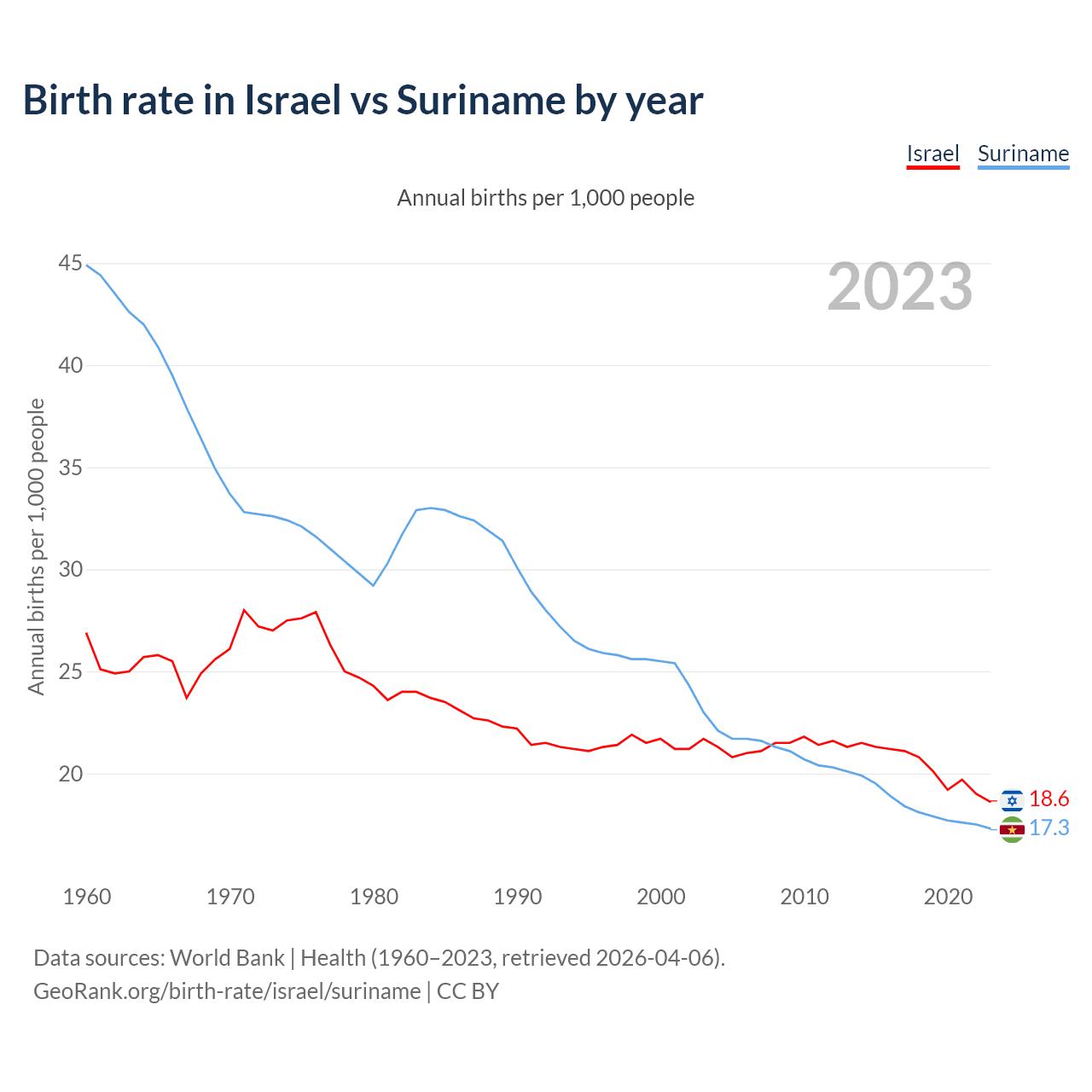 GeoRank.org/birth-rate/israel/suriname | CC BY