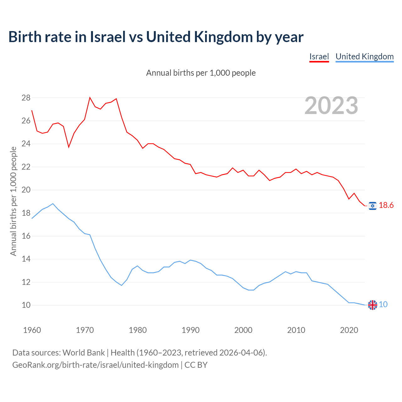 GeoRank.org/birth-rate/israel/united-kingdom | CC BY