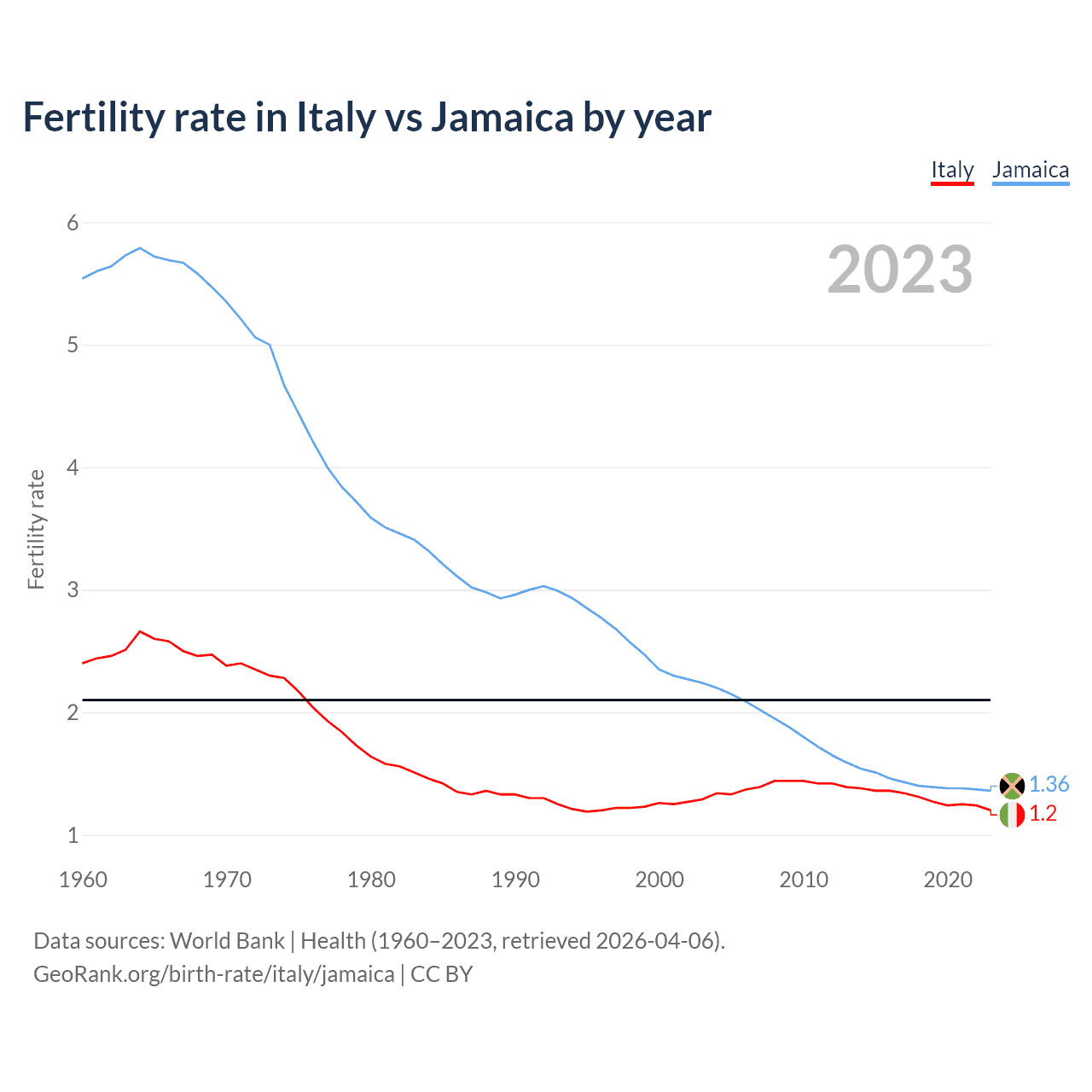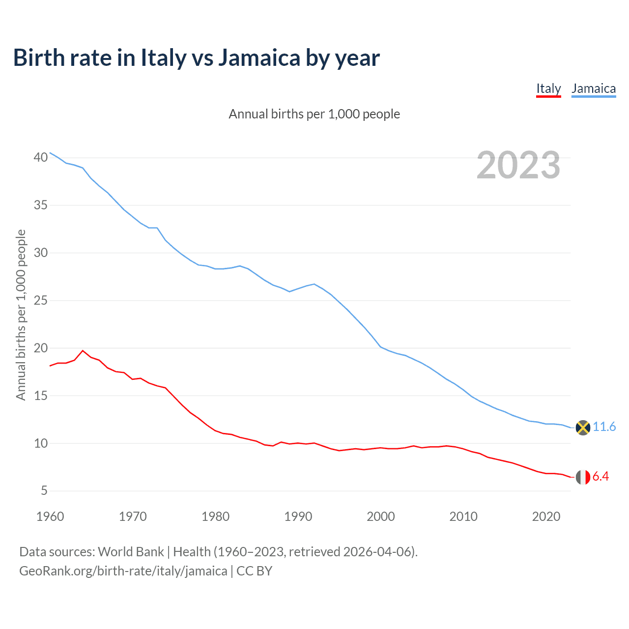 GeoRank.org/birth-rate/italy/jamaica | CC BY