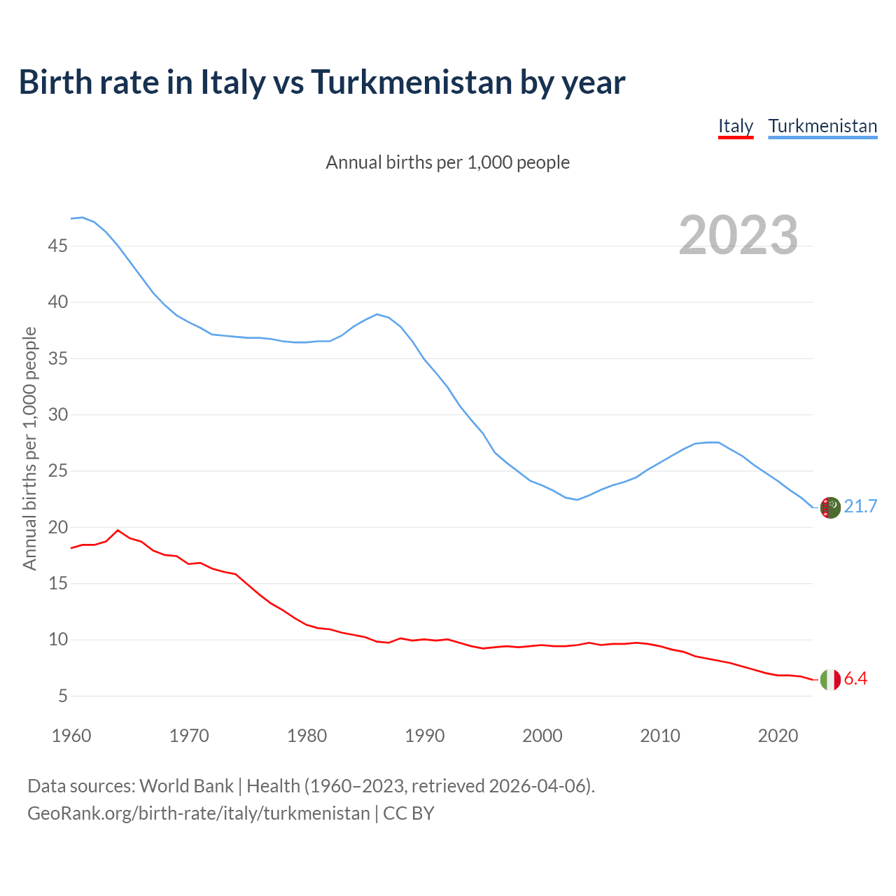GeoRank.org/birth-rate/italy/turkmenistan | CC BY
