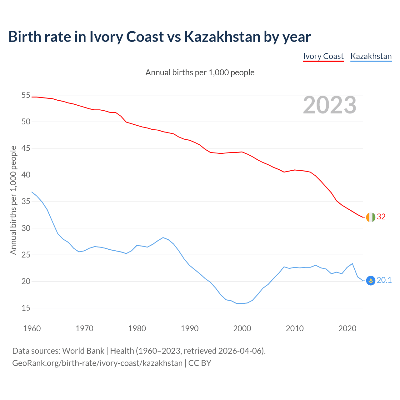 GeoRank.org/birth-rate/ivory-coast/kazakhstan | CC BY