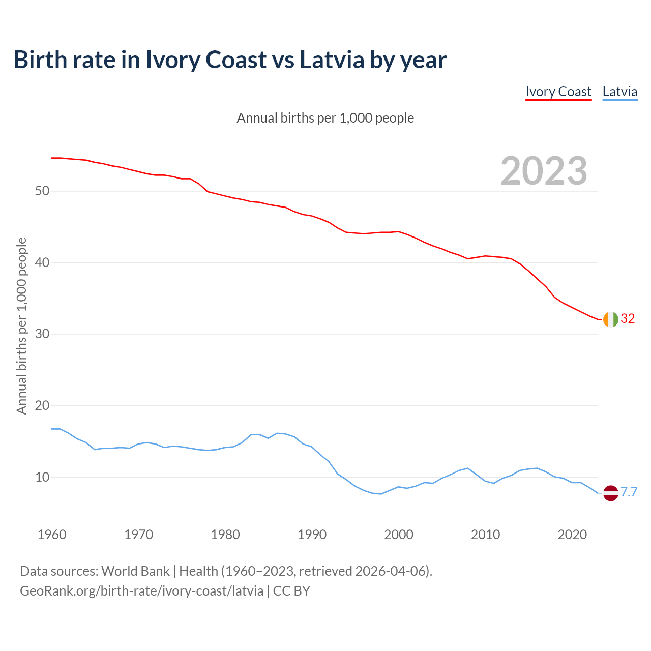 GeoRank.org/birth-rate/ivory-coast/latvia | CC BY
