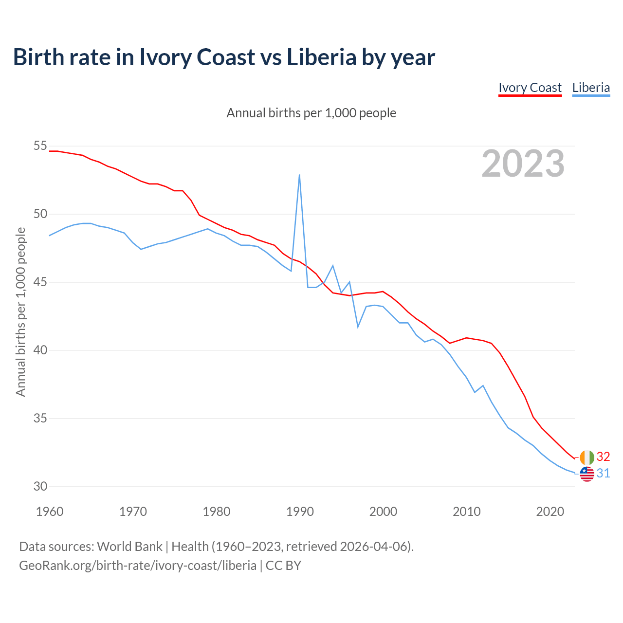 GeoRank.org/birth-rate/ivory-coast/liberia | CC BY