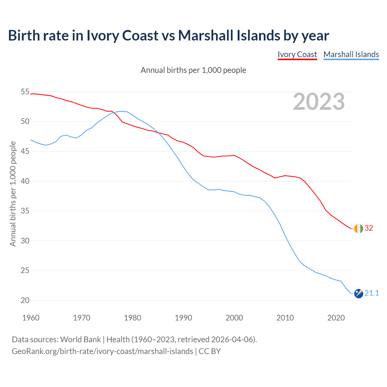 GeoRank.org/birth-rate/ivory-coast/marshall-islands | CC BY