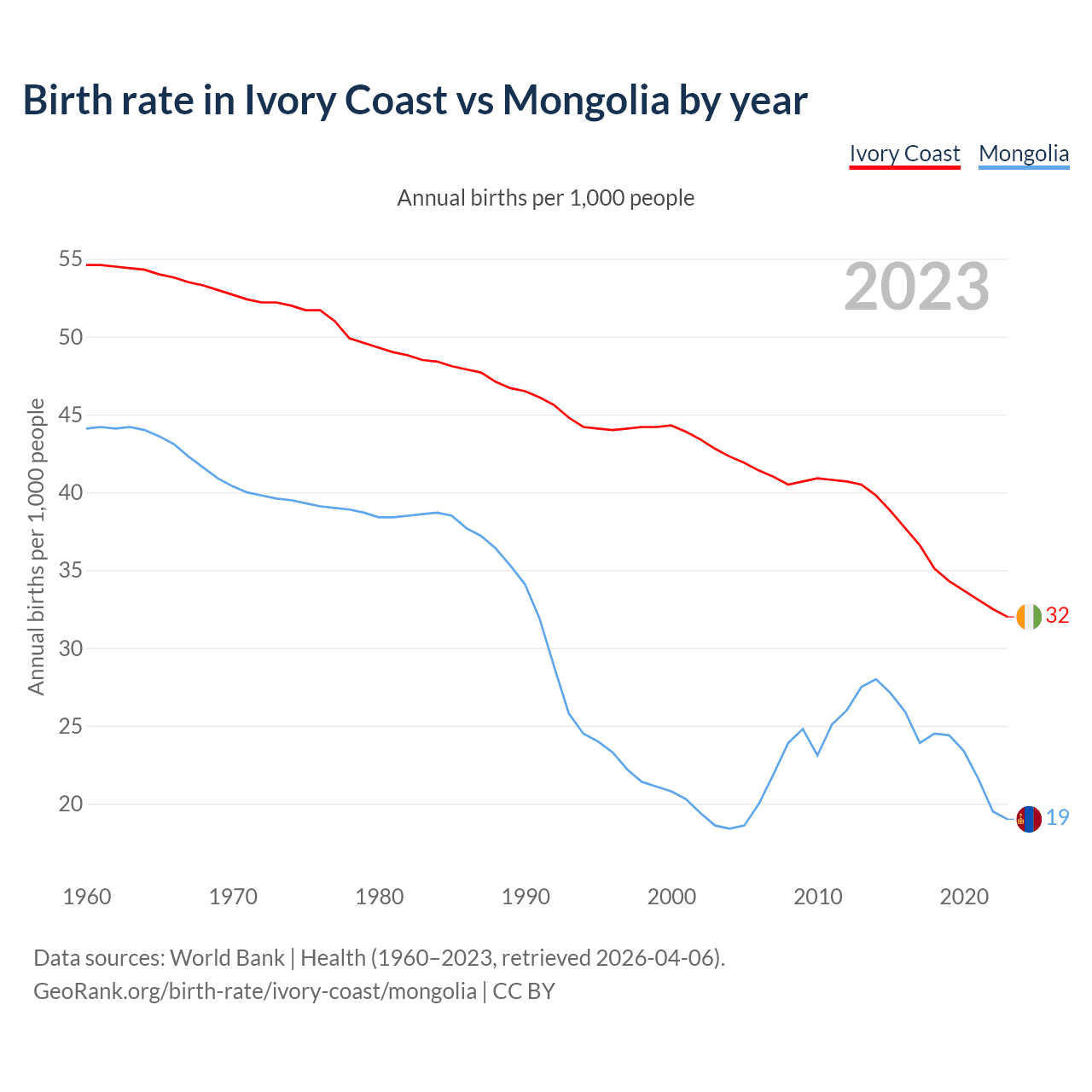 GeoRank.org/birth-rate/ivory-coast/mongolia | CC BY