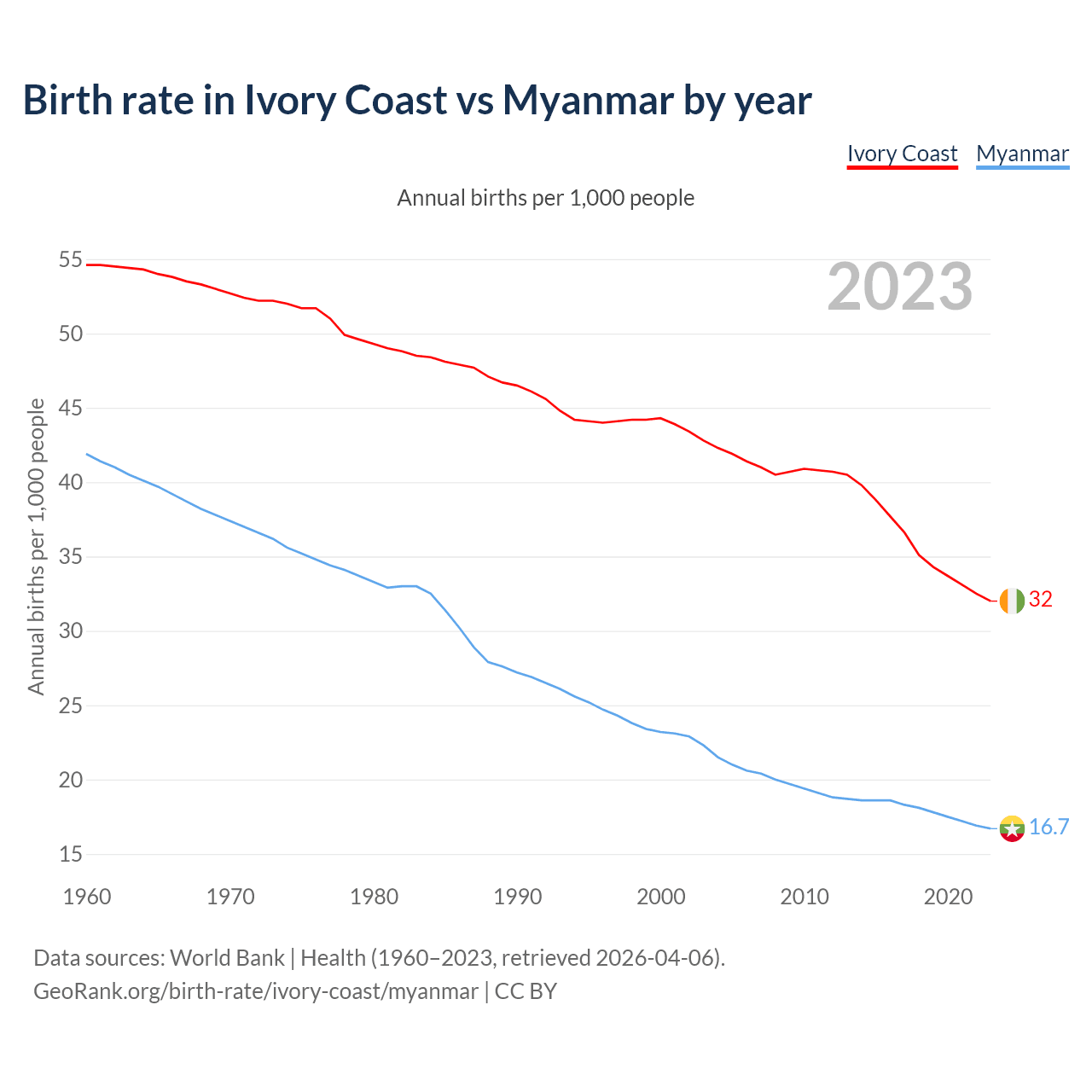 GeoRank.org/birth-rate/ivory-coast/myanmar | CC BY
