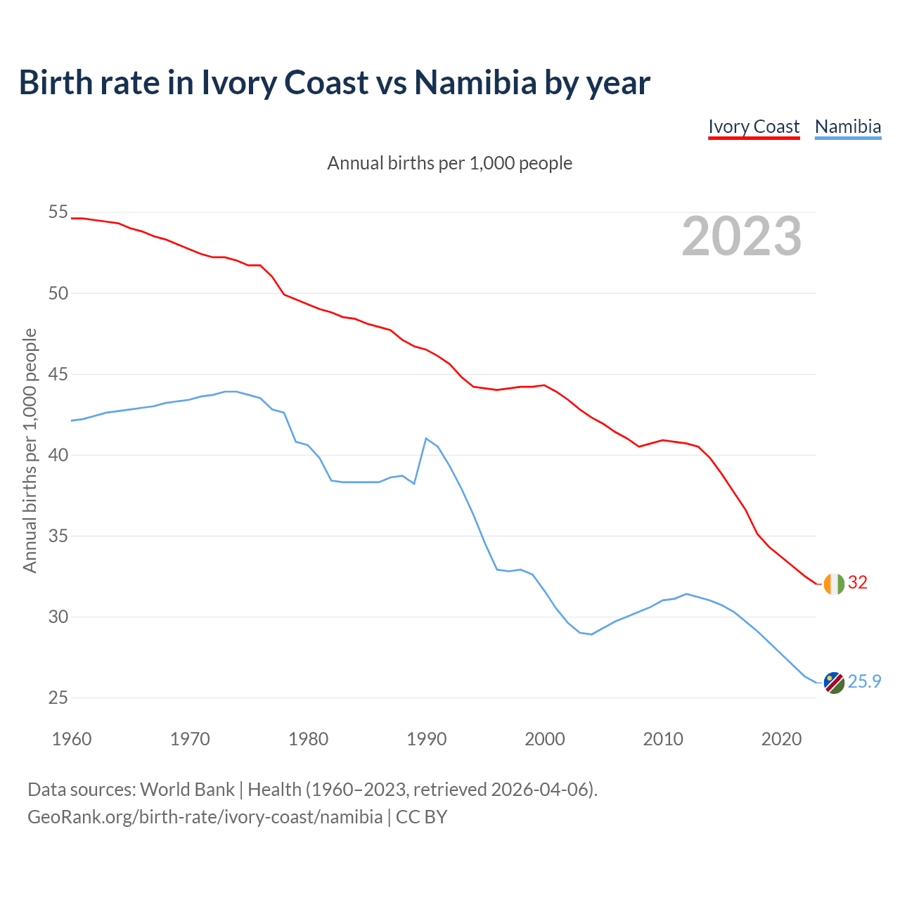GeoRank.org/birth-rate/ivory-coast/namibia | CC BY