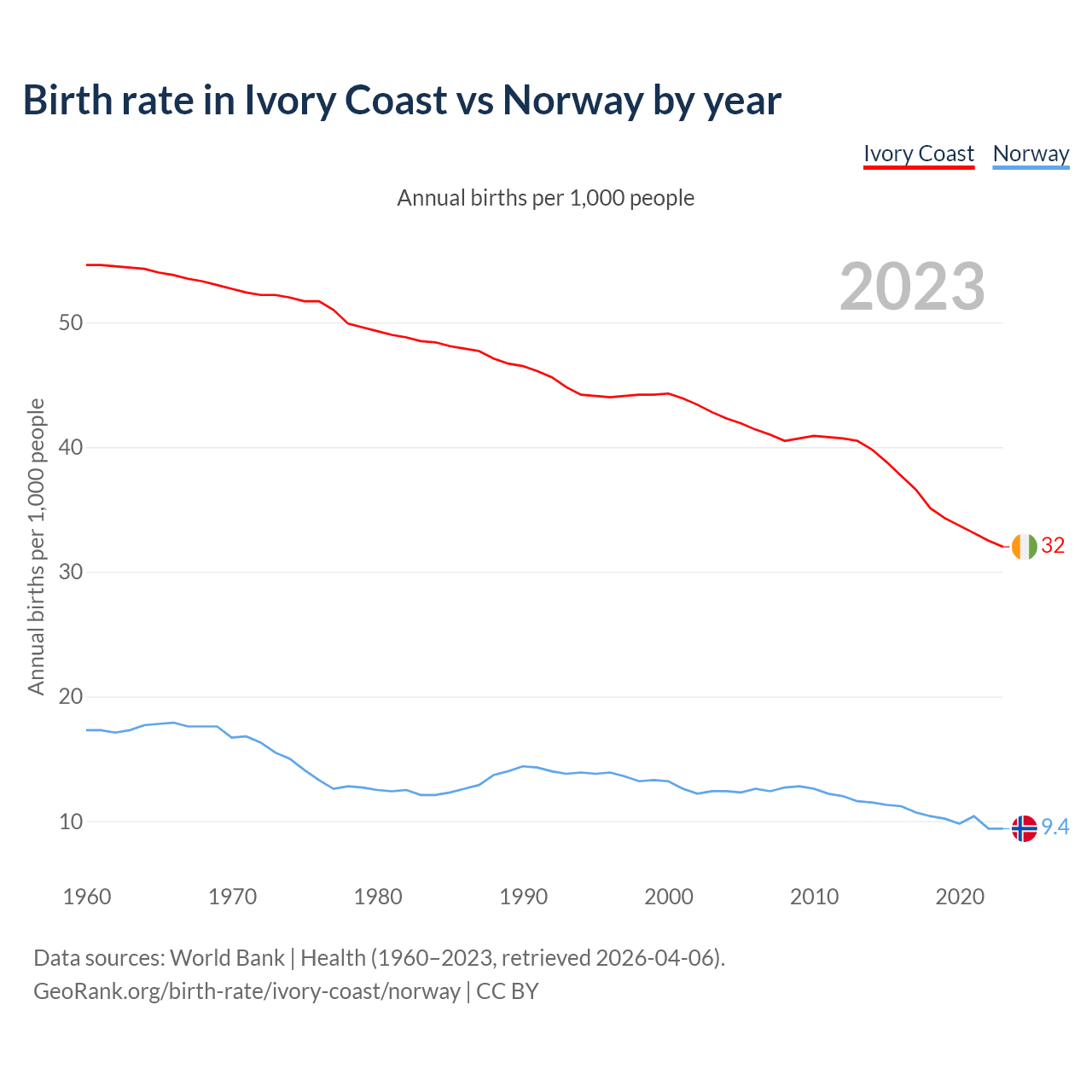 GeoRank.org/birth-rate/ivory-coast/norway | CC BY