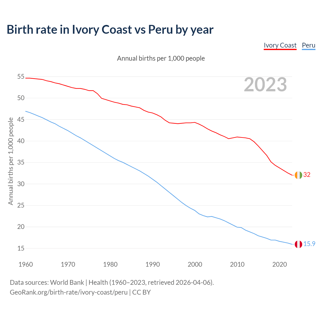 GeoRank.org/birth-rate/ivory-coast/peru | CC BY