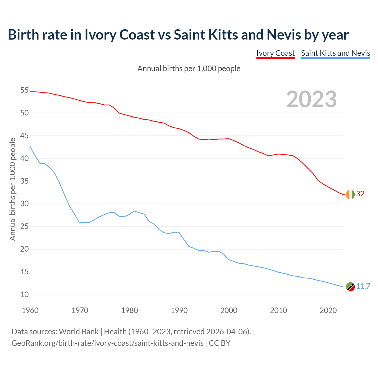 GeoRank.org/birth-rate/ivory-coast/saint-kitts-and-nevis | CC BY