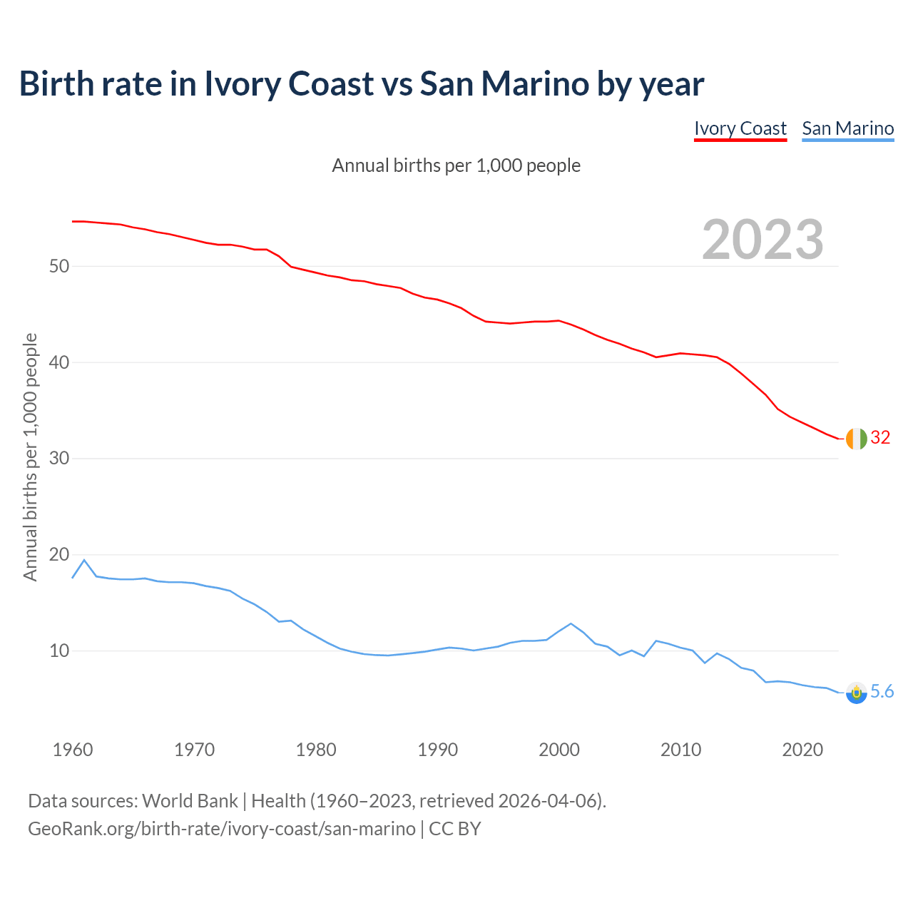 GeoRank.org/birth-rate/ivory-coast/san-marino | CC BY