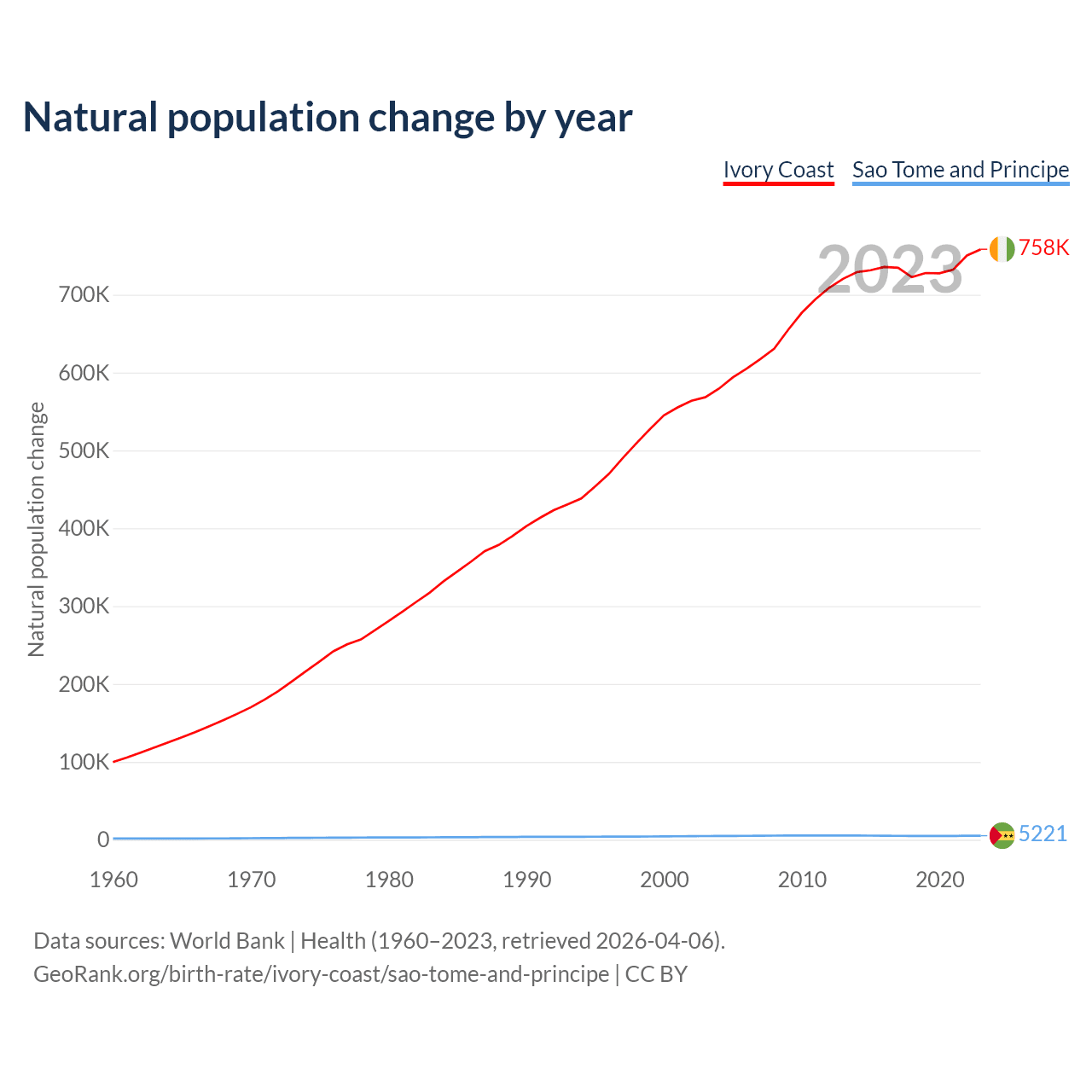 Check Ivory Coast vs Sao Tome and Principe population clock for a dynamic visualization of the changing population.