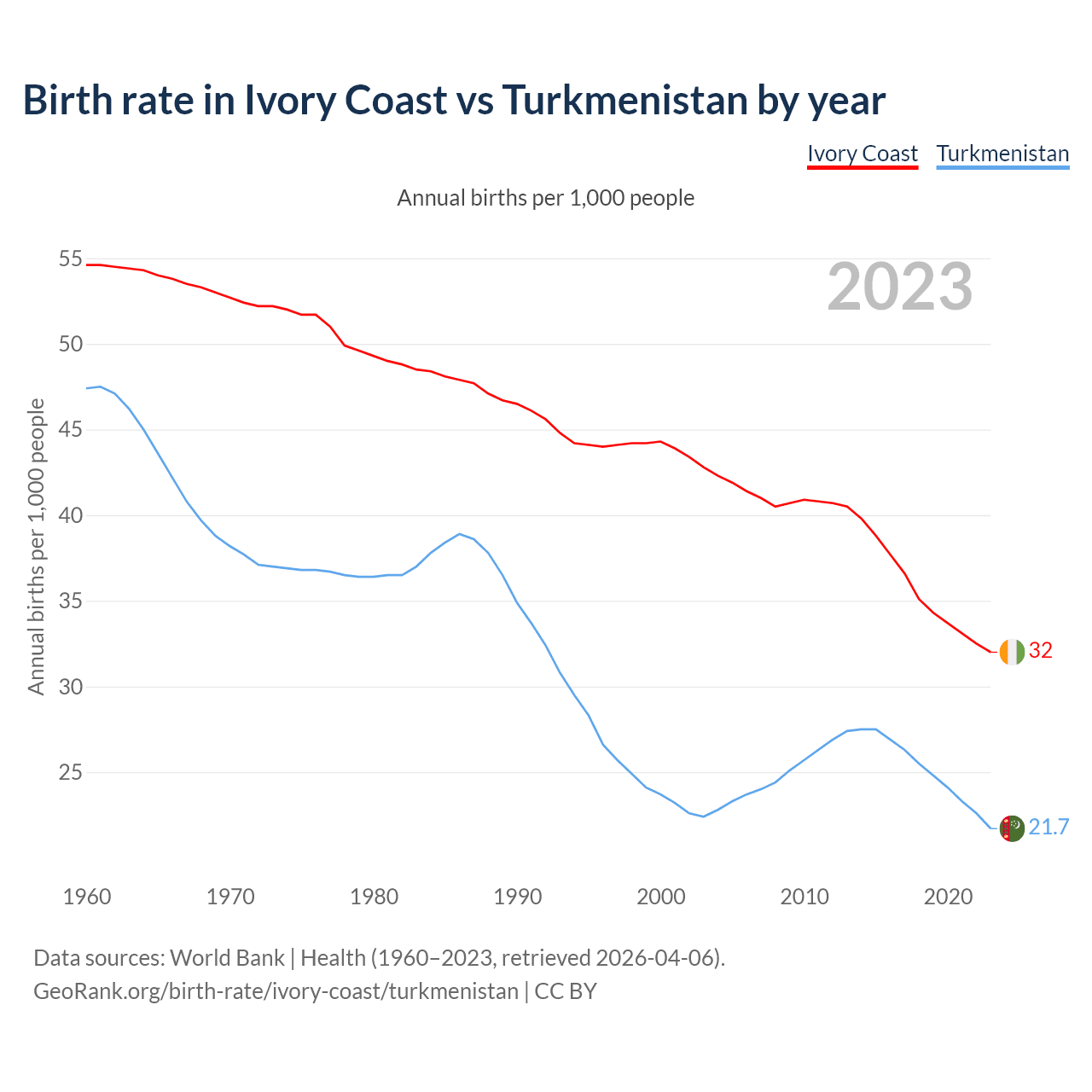 GeoRank.org/birth-rate/ivory-coast/turkmenistan | CC BY