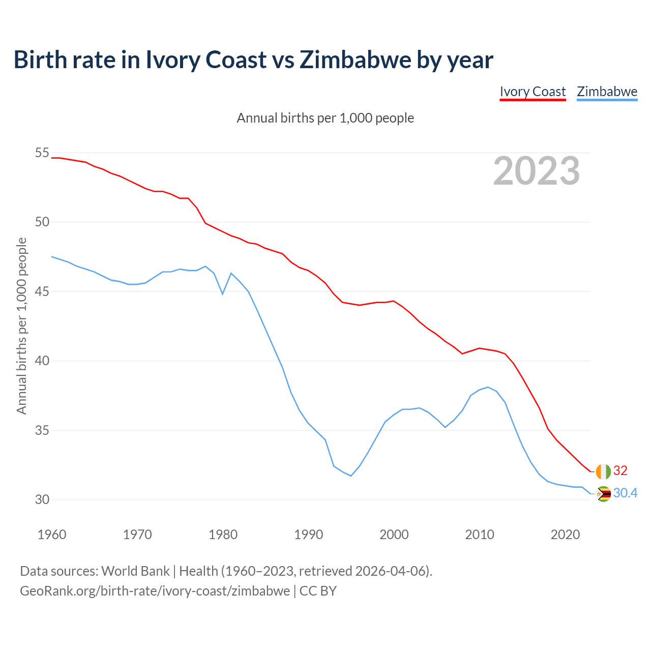 GeoRank.org/birth-rate/ivory-coast/zimbabwe | CC BY