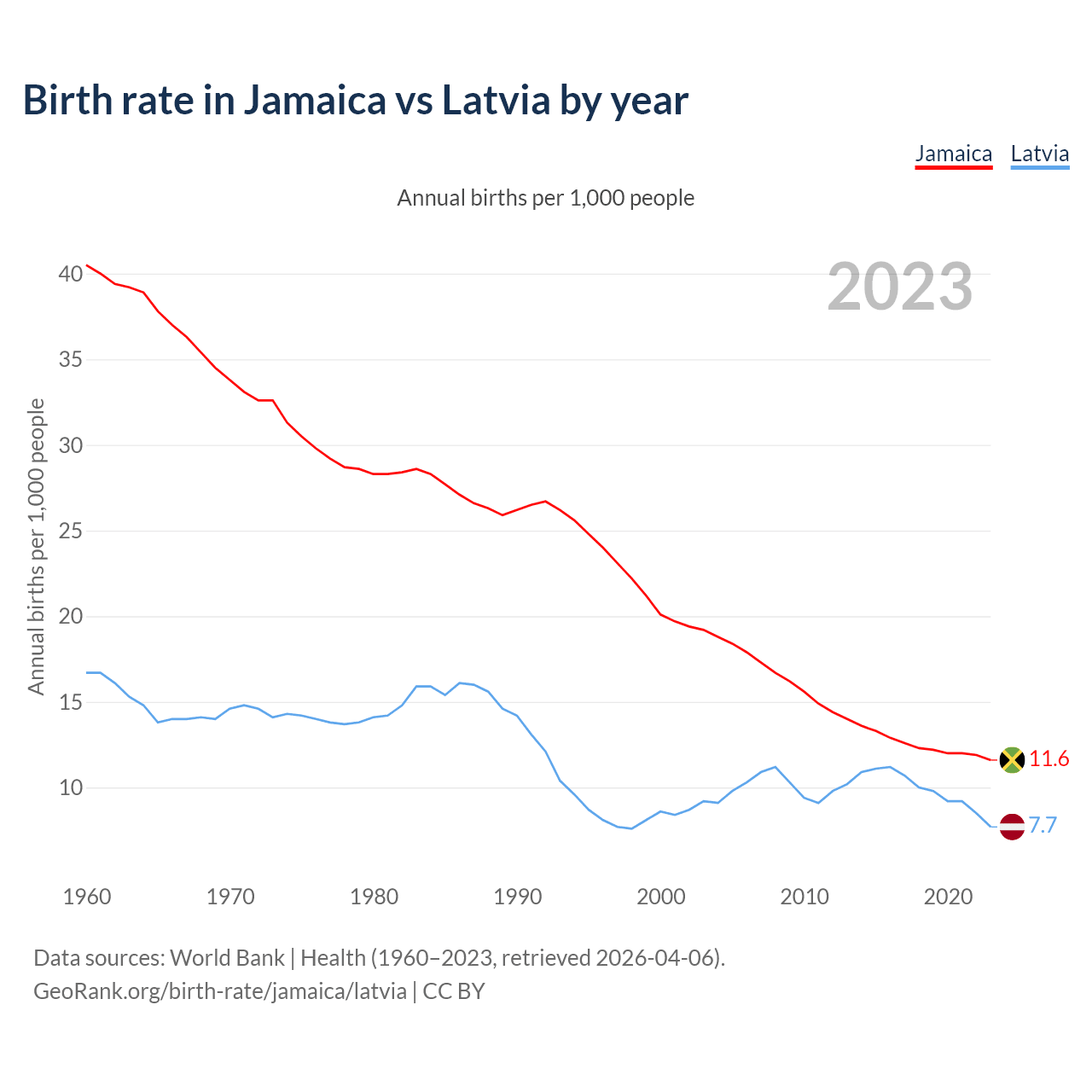 GeoRank.org/birth-rate/jamaica/latvia | CC BY