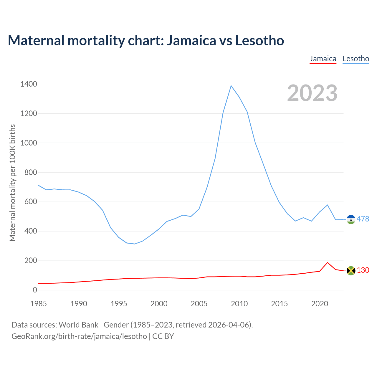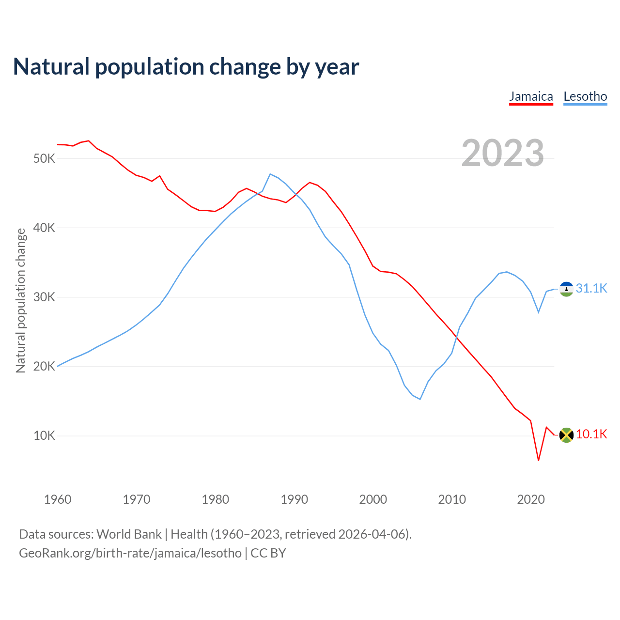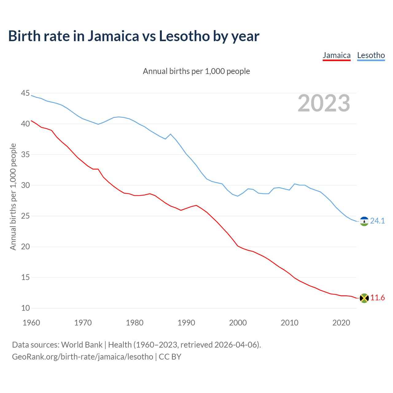 GeoRank.org/birth-rate/jamaica/lesotho | CC BY