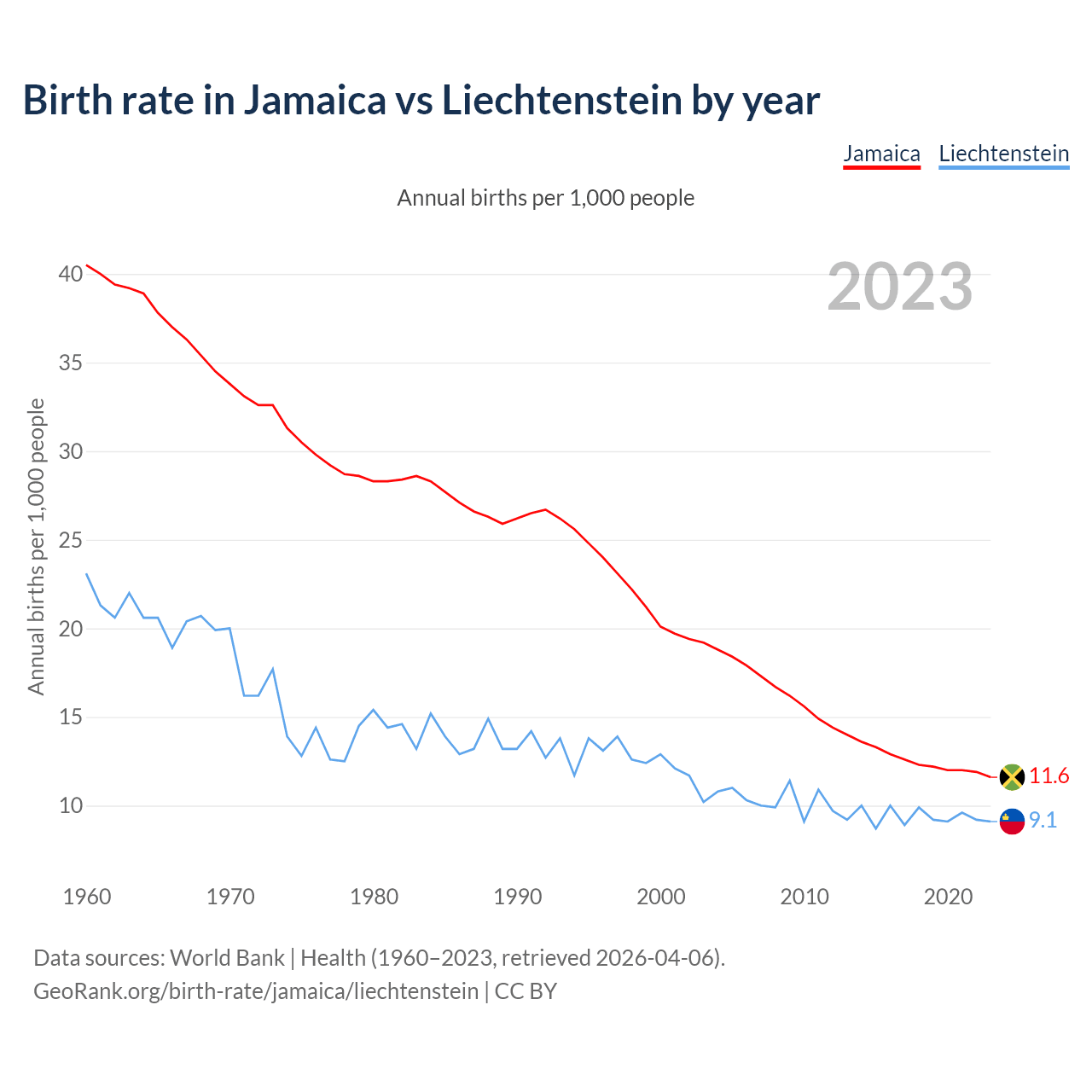 GeoRank.org/birth-rate/jamaica/liechtenstein | CC BY
